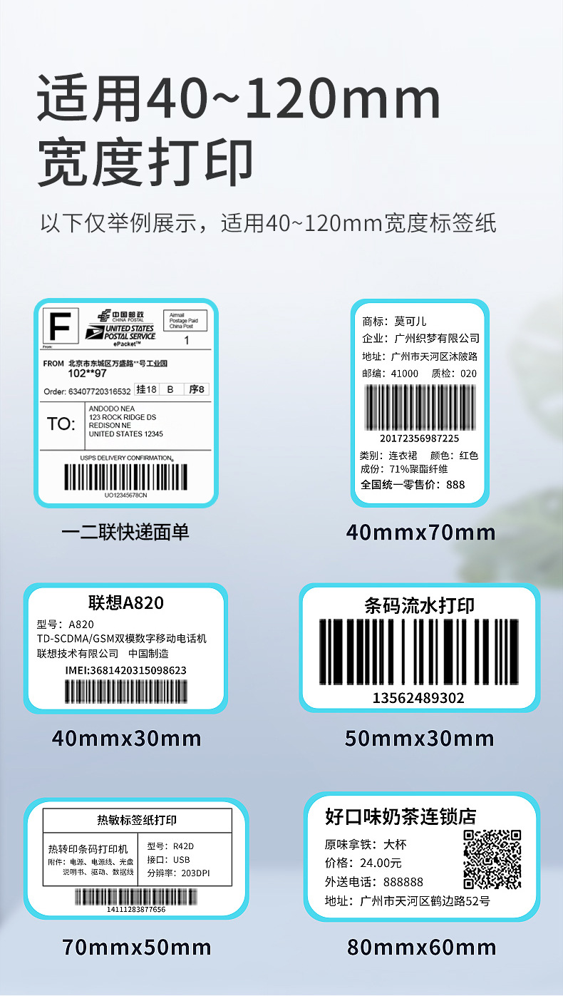 TDL406 열전사 프린터 익스프레스 전자 크로스 보더 단일 라벨 10*10mm 바코드 스티커용 동쪽스토어 가기