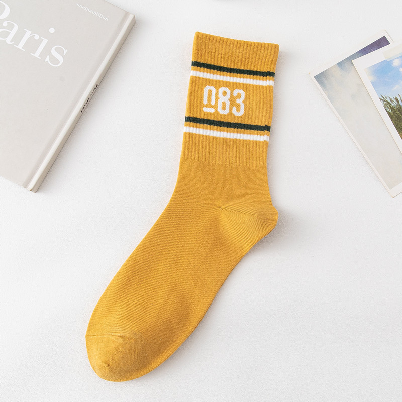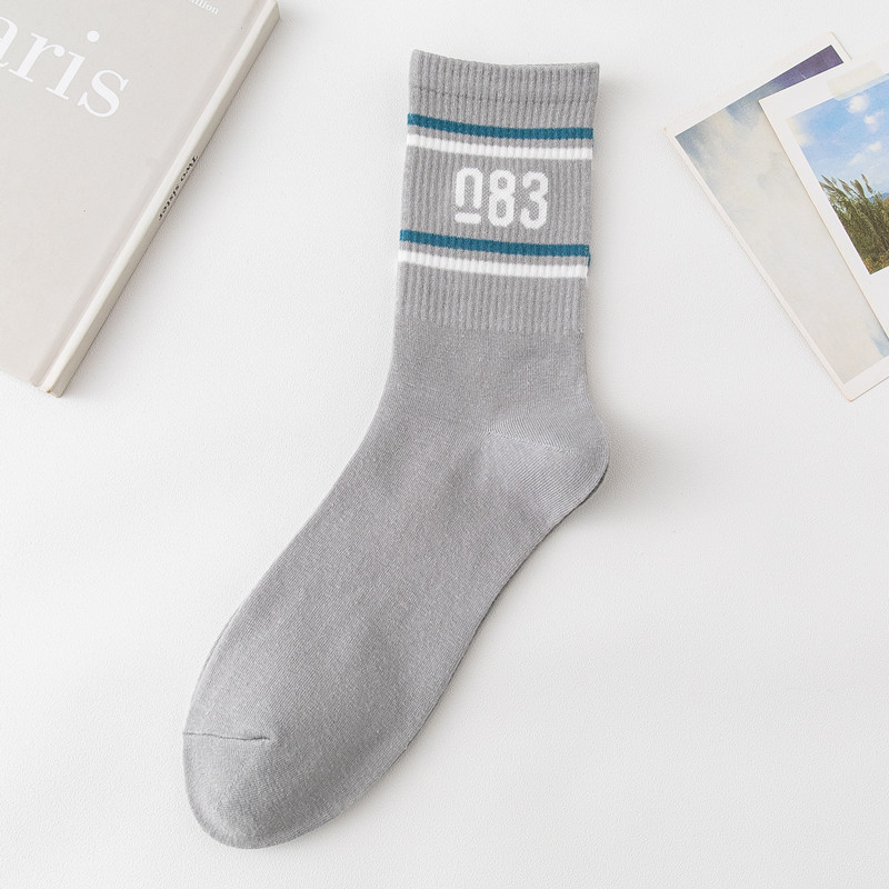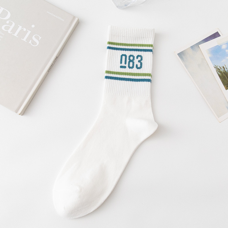 가을 유행 스포츠 편지 면 양말 남성용 흑백 INS 땀 흡수 간단한 다목적 양말