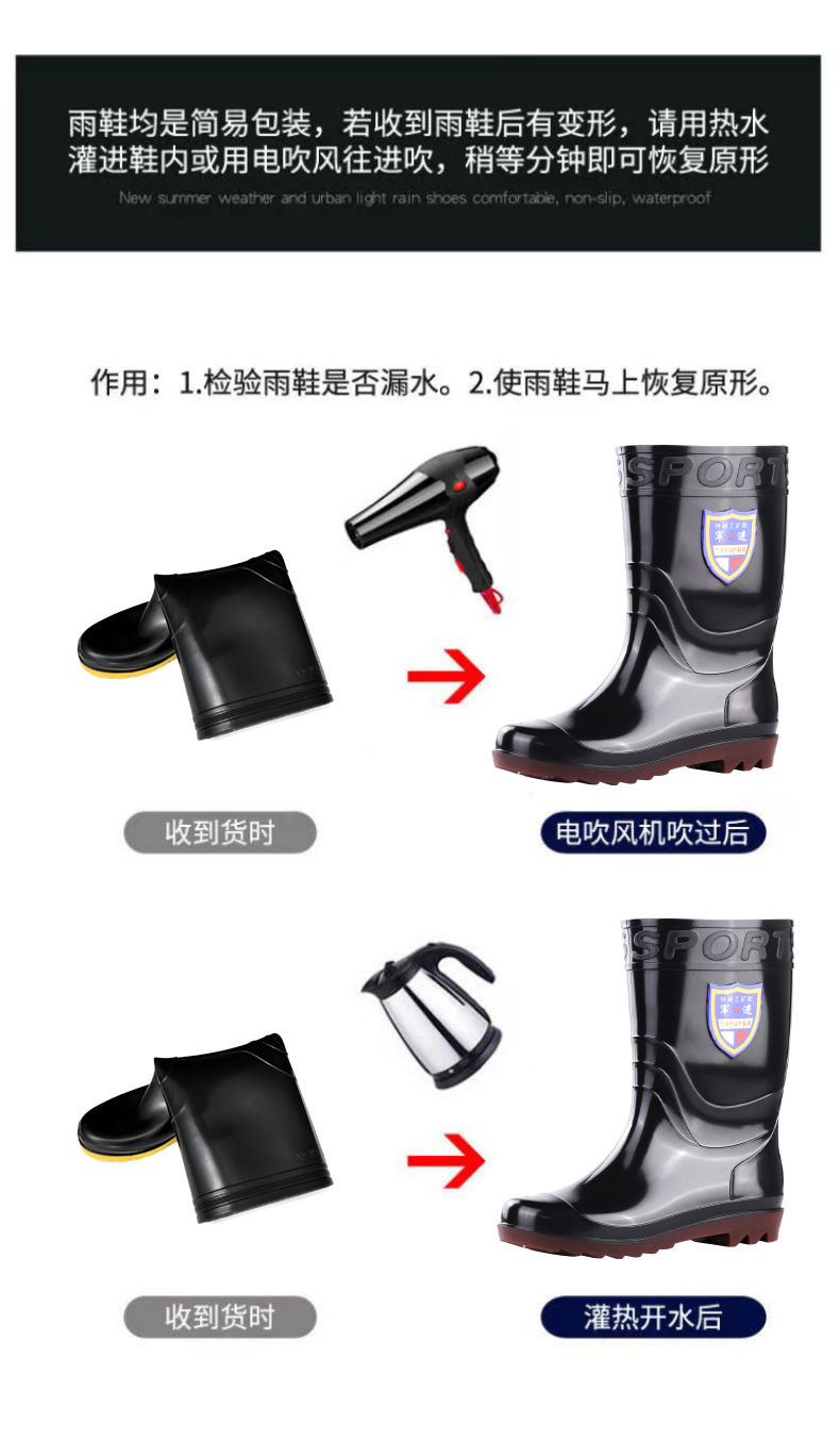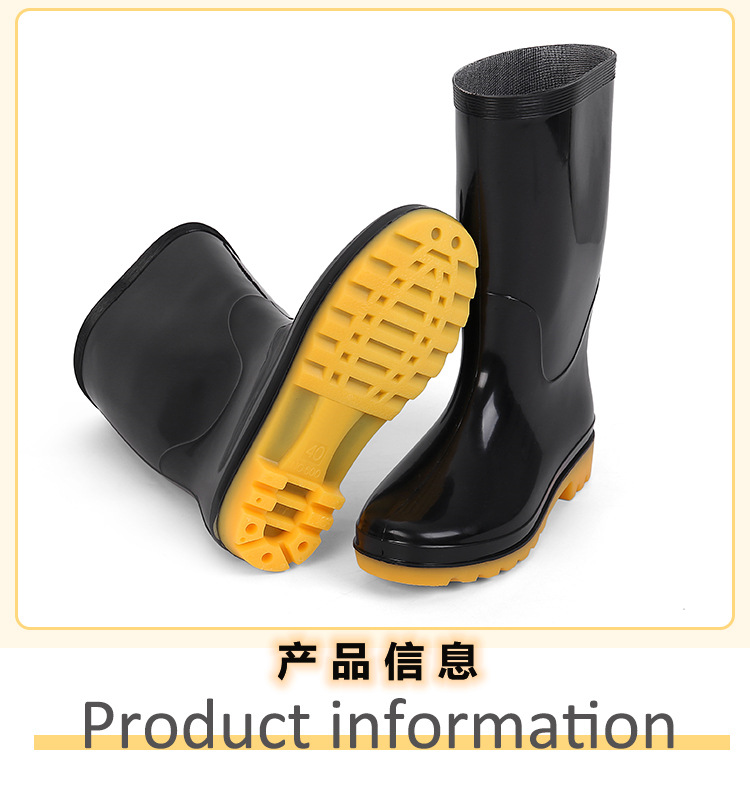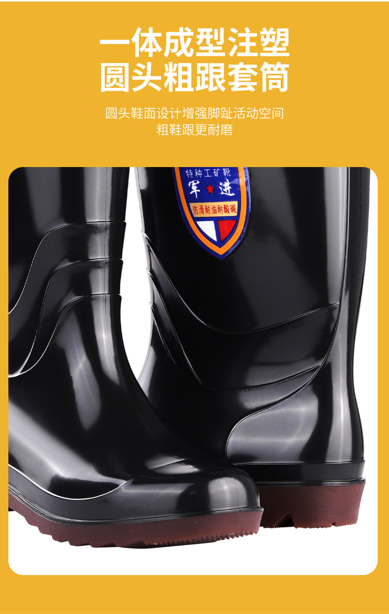 短筒男士黑色圆头雨靴三防成人低跟水鞋厨房硫化注塑工作劳保雨鞋