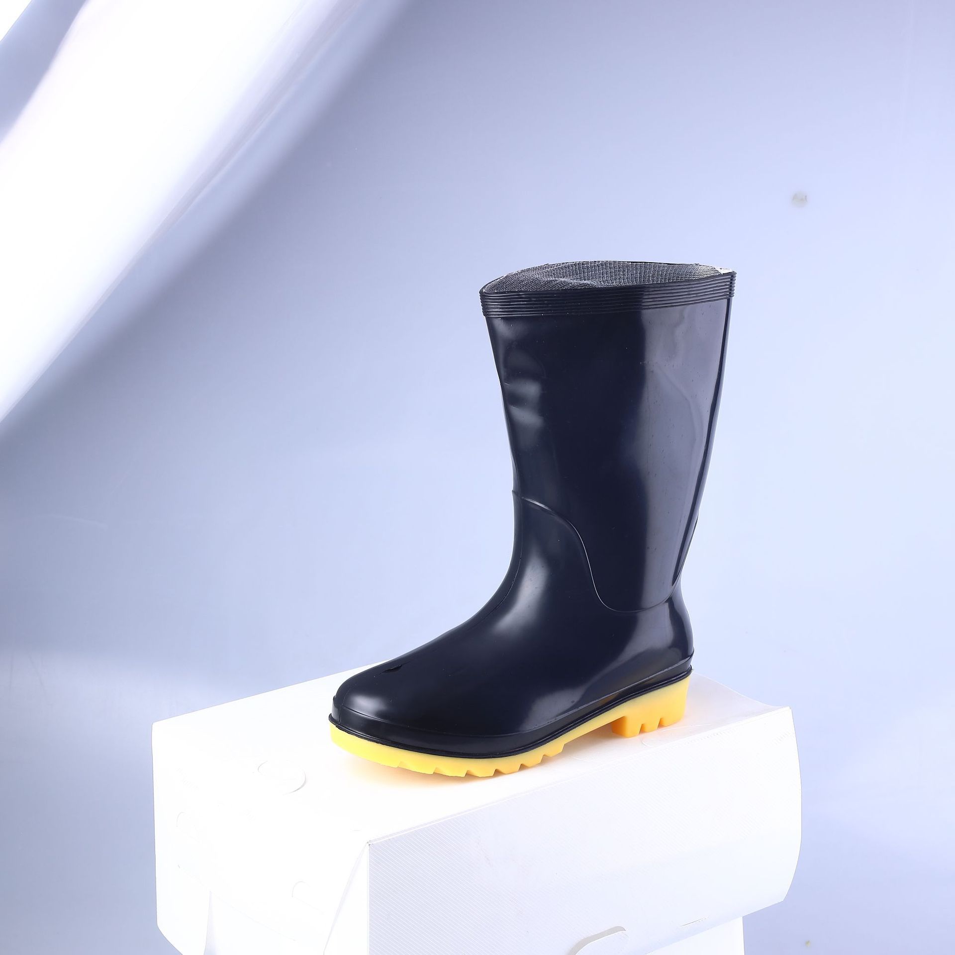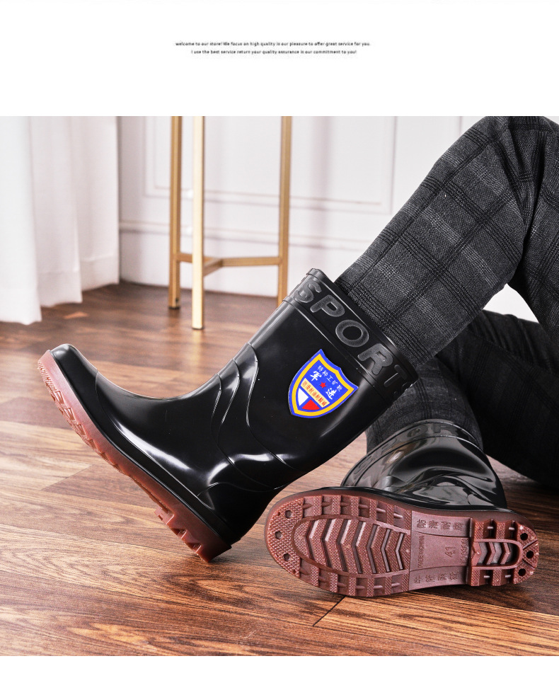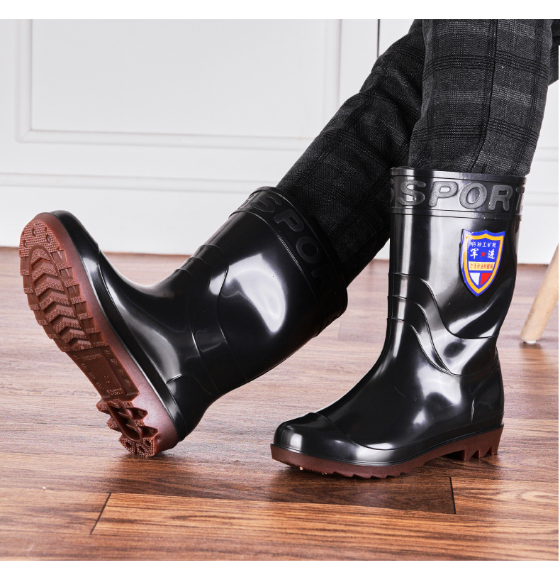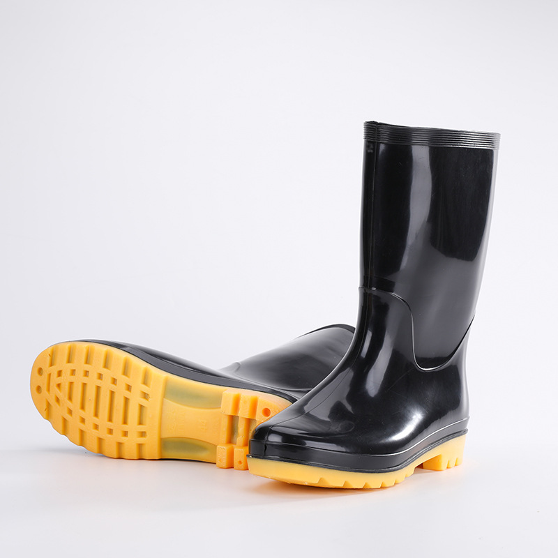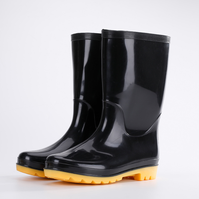 남자의 중간 배럴 웨지 물 신발 재고 성인 라운드 발가락 방수 장화 블랙 미드 탑 고무 신발 쇠고기 바닥 장화