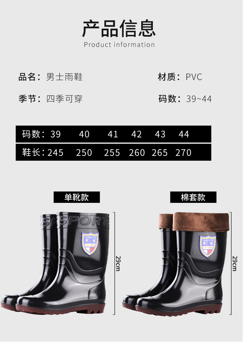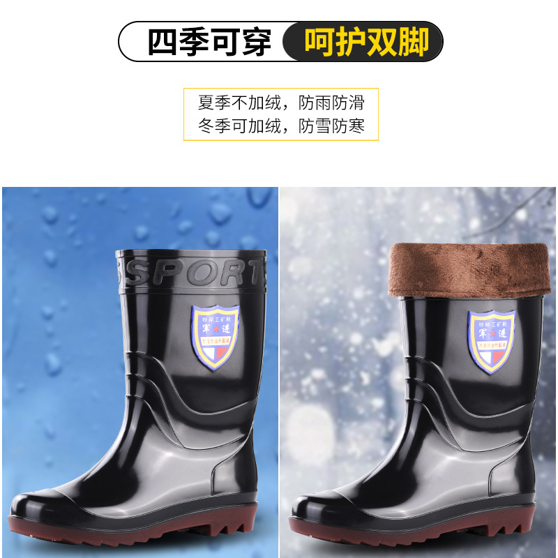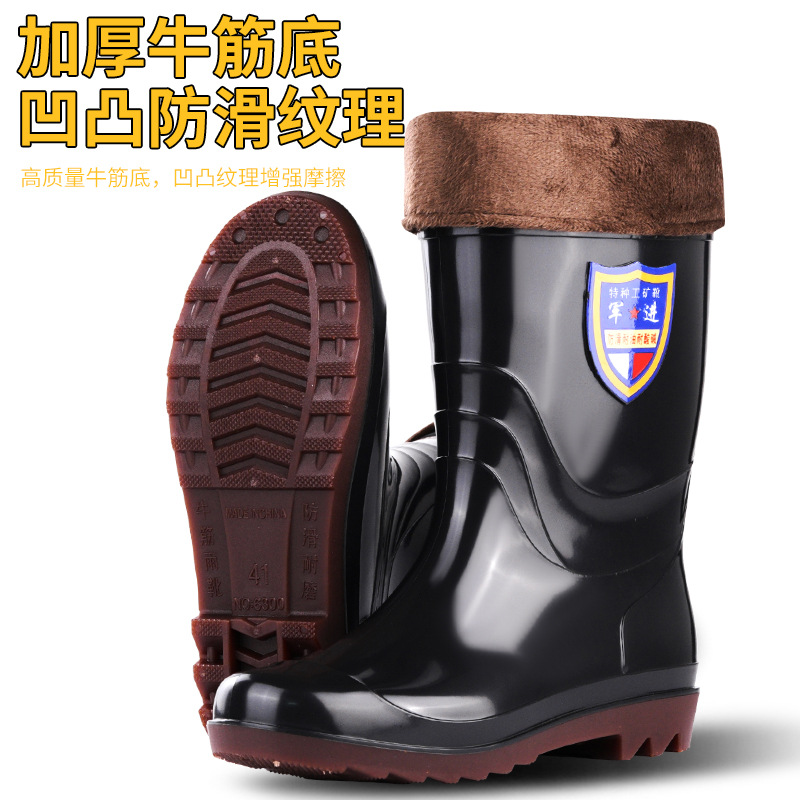冬季男士高邦雨鞋高筒保暖舒适工地长筒雨靴塑胶水鞋牛筋底胶鞋男