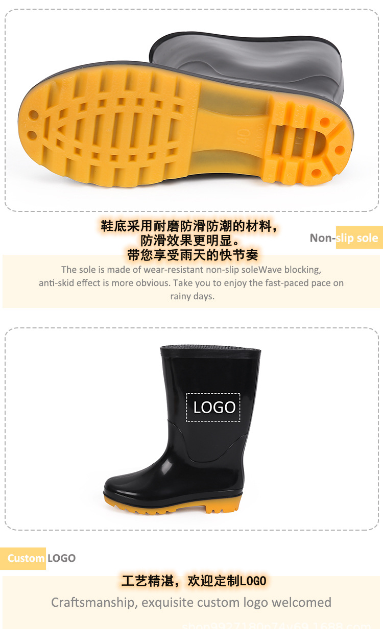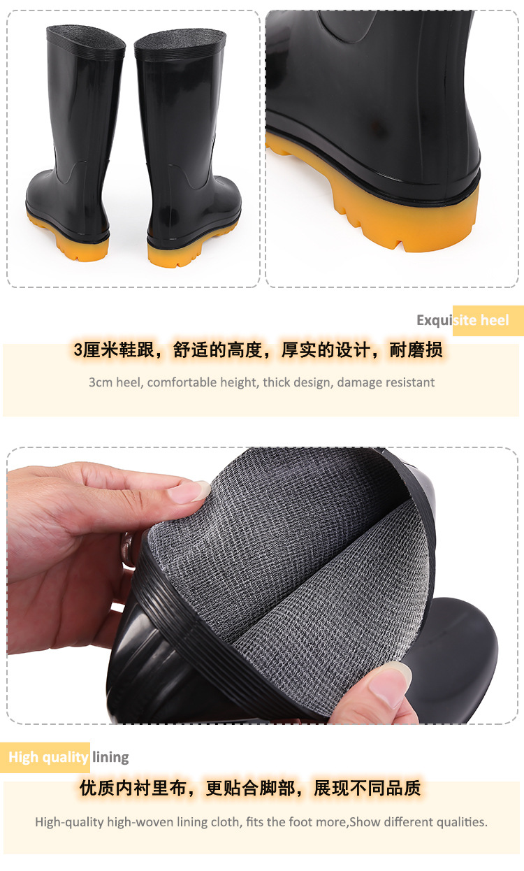 低跟时尚长筒雨靴女款防滑高筒水鞋厨房pvc女士雨鞋高帮女软胶鞋