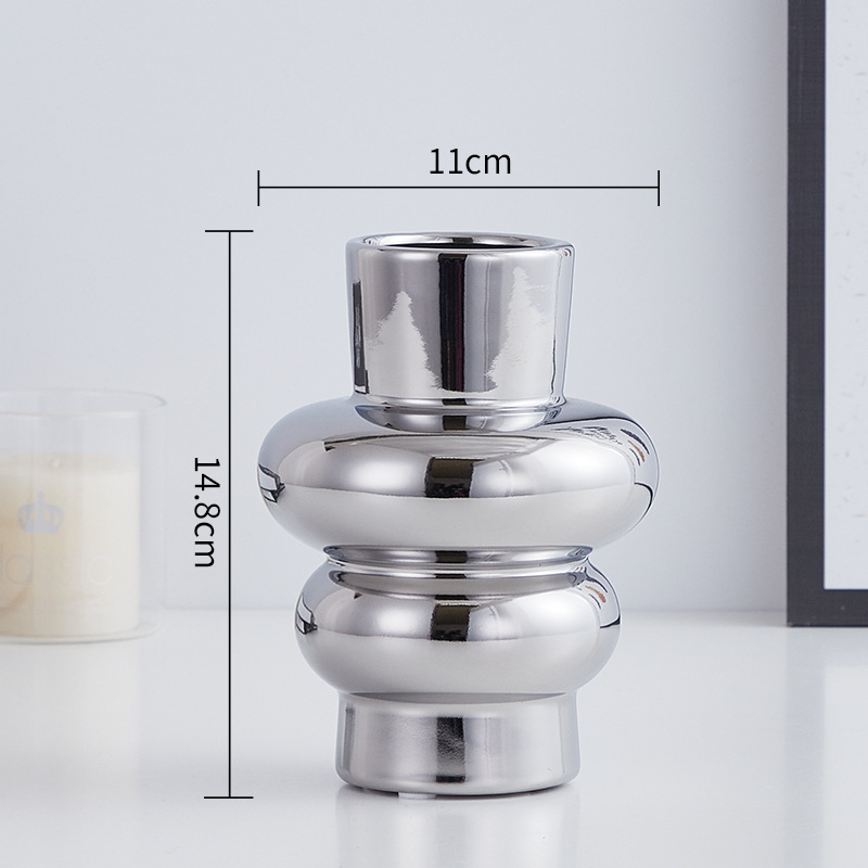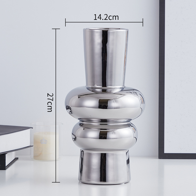 실버 전기 도금 세라믹 꽃병 거실 복도 상점 호텔 꽃병 장식 부드러운 모델 룸 조명 럭셔리 장식스토어 가기