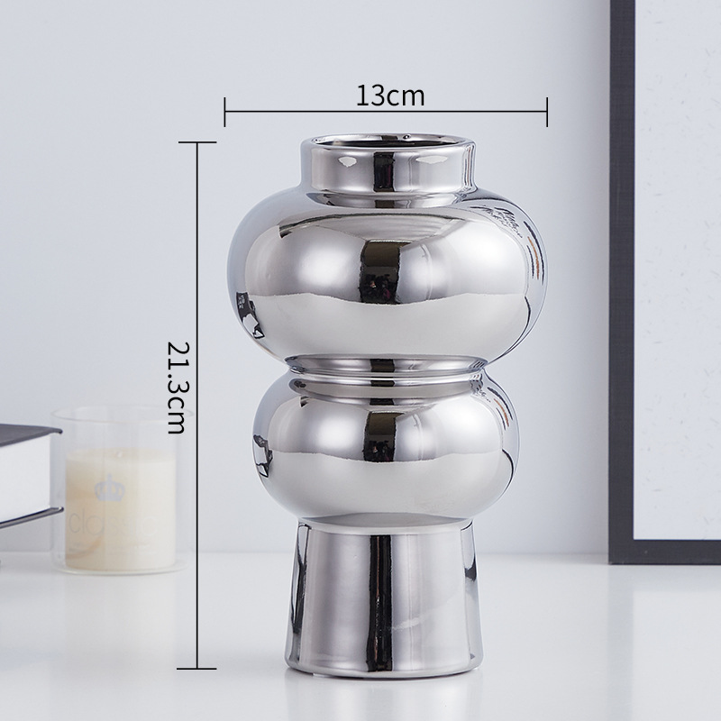 실버 전기 도금 세라믹 꽃병 거실 복도 상점 호텔 꽃병 장식 부드러운 모델 룸 조명 럭셔리 장식
