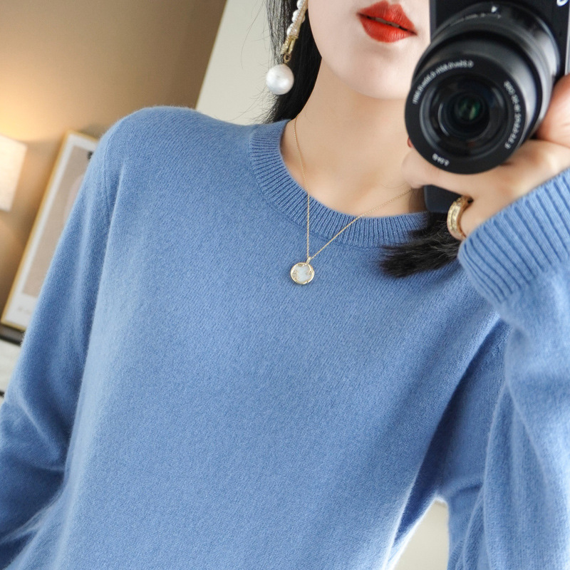 2021 가을과 겨울 여성의 새로운 스웨터 풀오버 라운드 넥 하의 셔츠 긴 소매 풀오버 단색 스웨터 여성 도매스토어 가기