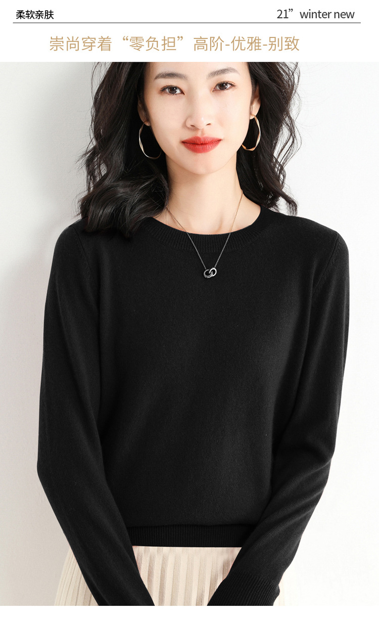 2021 가을과 겨울 여성의 새로운 스웨터 풀오버 라운드 넥 하의 셔츠 긴 소매 풀오버 단색 스웨터 여성 도매