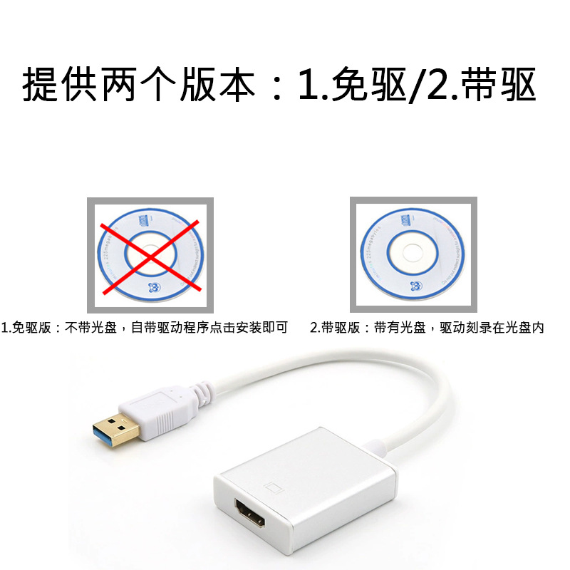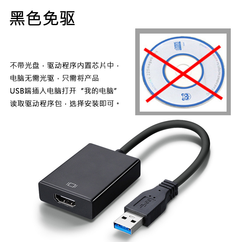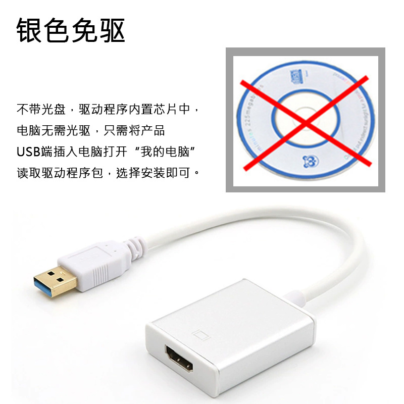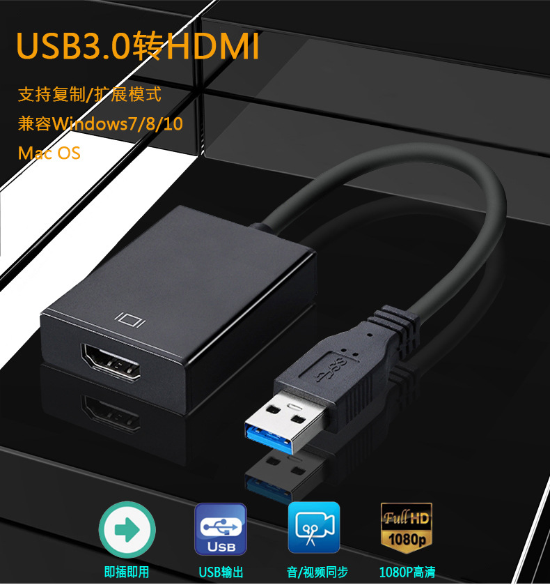 USB3.0 - HDMI 노트북 어댑터 USB - HDMI 실버 블랙 드라이버가 없는 HD 비디오 변환