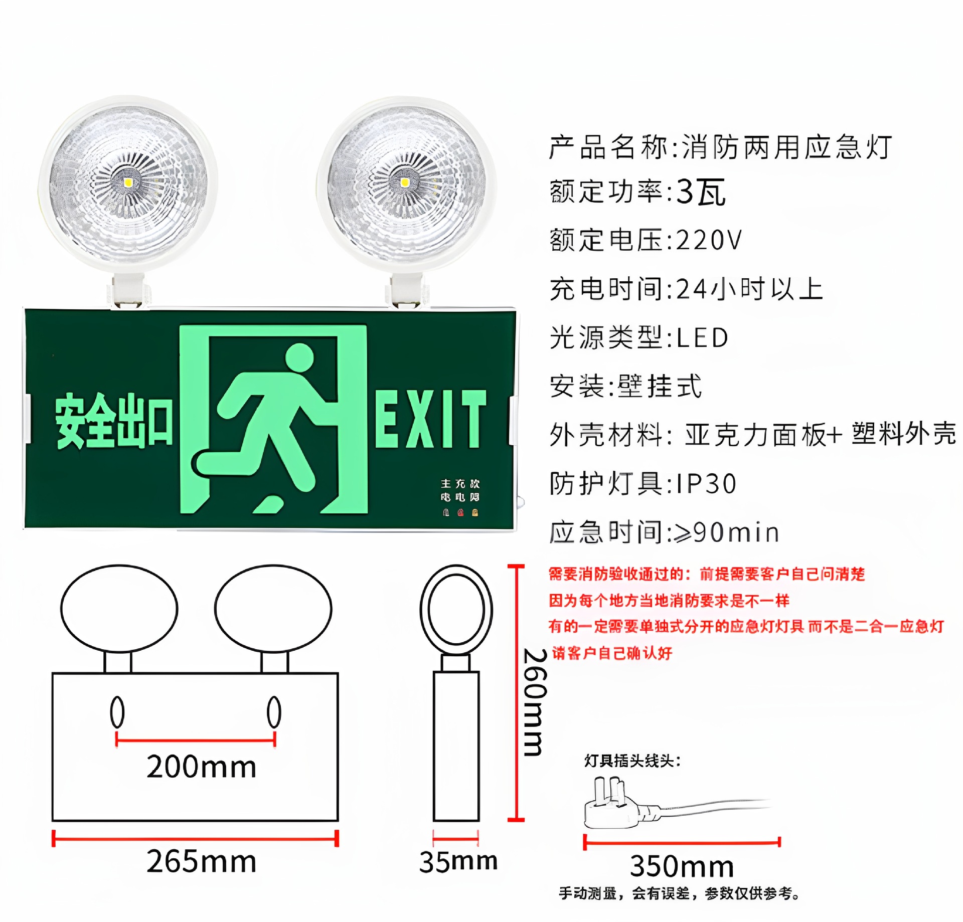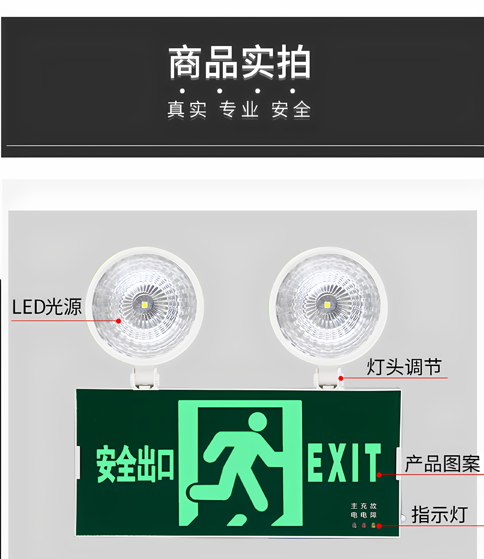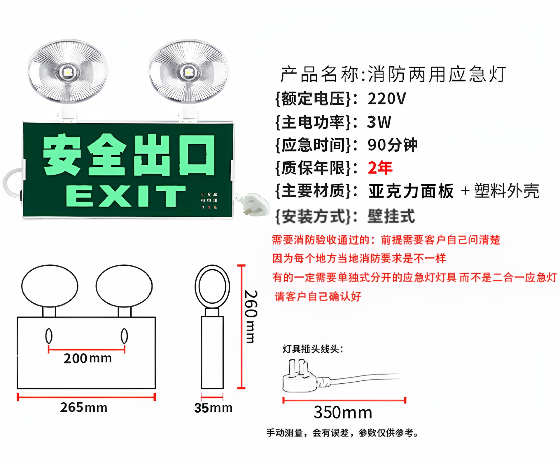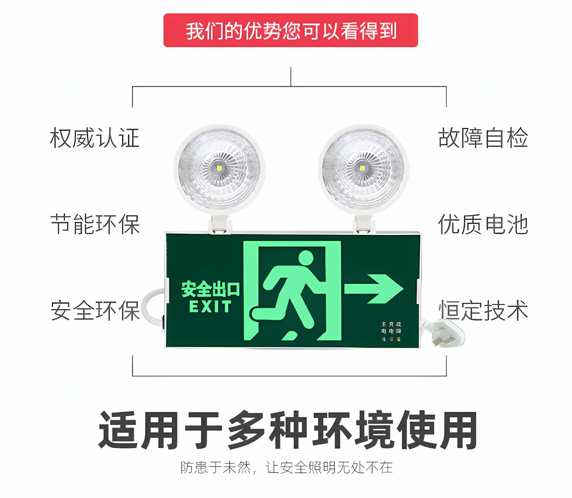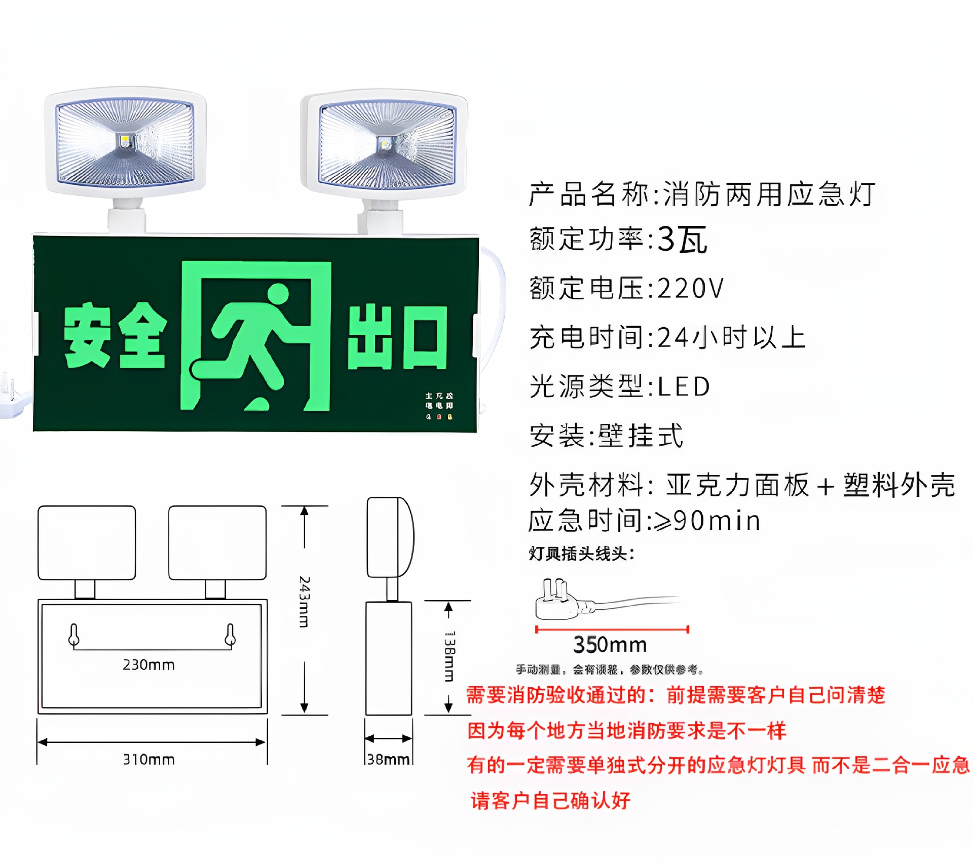 2 대 1 화재 비상등 이중 용도 신녹색 표시등 복합 일체형 전기 마커등 화재 램프스토어 가기