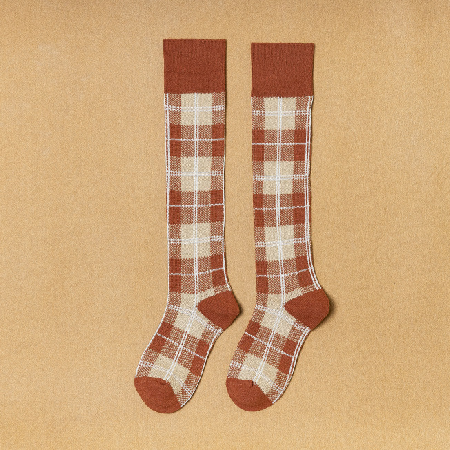 최신 유행 양말 여성 면 양말 패션 격자 무늬 얕은 양말 중간 길이 양말 거리 스포츠 양말 자카드 양말