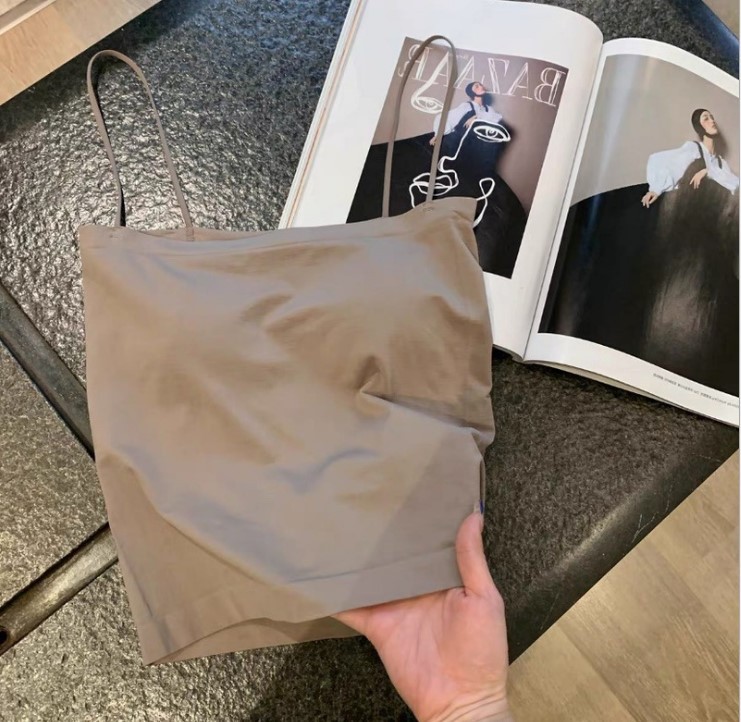 가슴 패드가 내장된 여성용 롱 아름다운 백 캐미솔, 일체형 고정컵, 베이스 레이어, 튜브탑, 컵이 떨어지지 않음, 여름에 밖에서 착용 가능스토어 가기