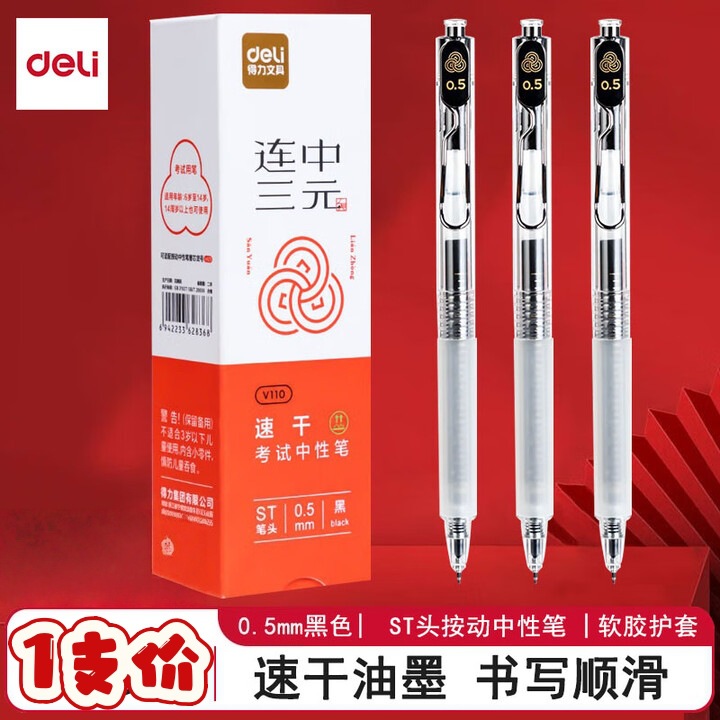 델리 프레스형 젤 펜 속건성 문제풀이용 펜 검정펜 빨강펜 프레스식 수성펜 볼펜 사무용 서명펜스토어 가기