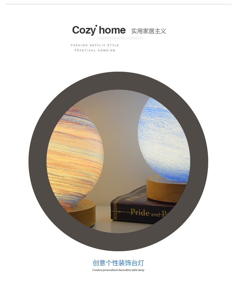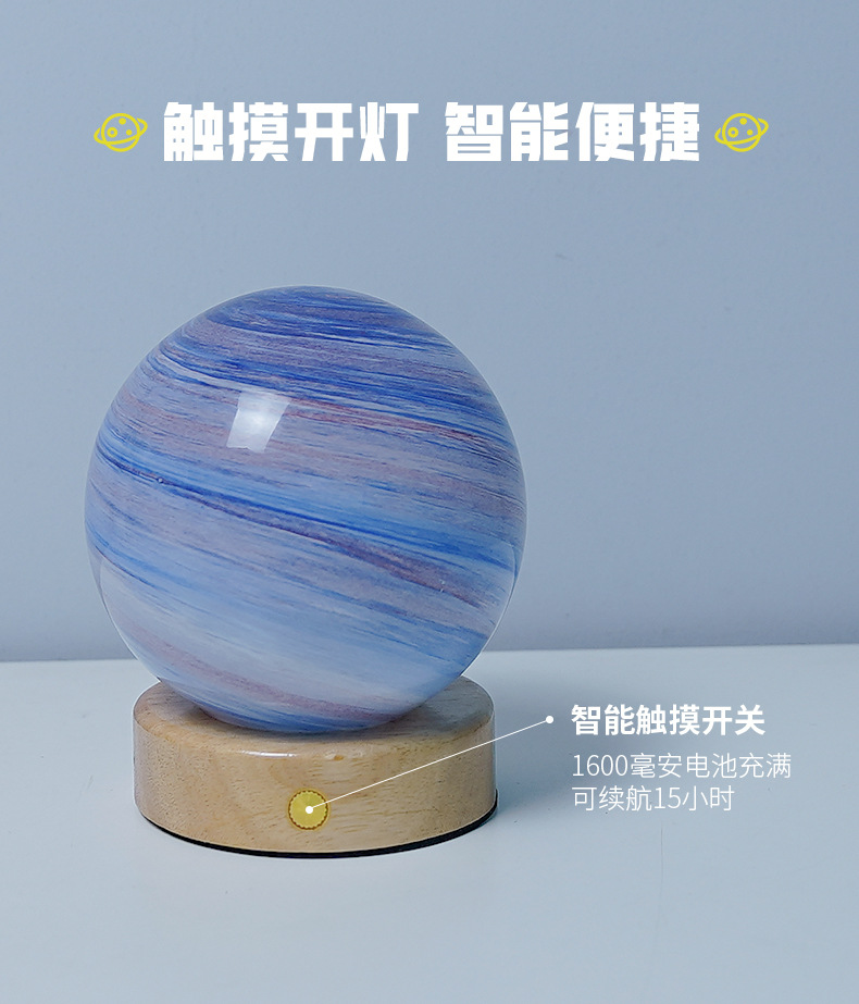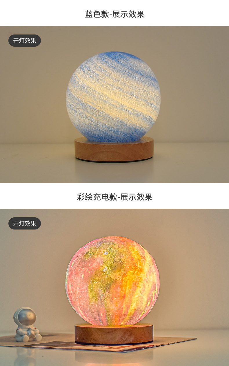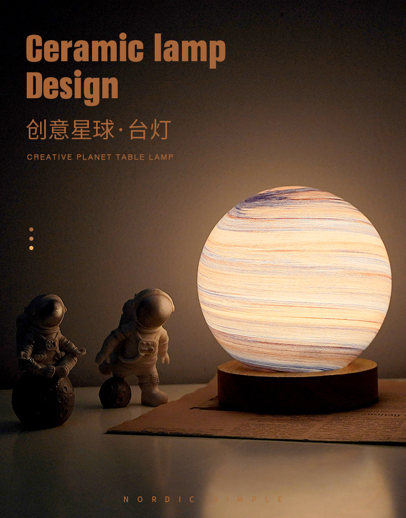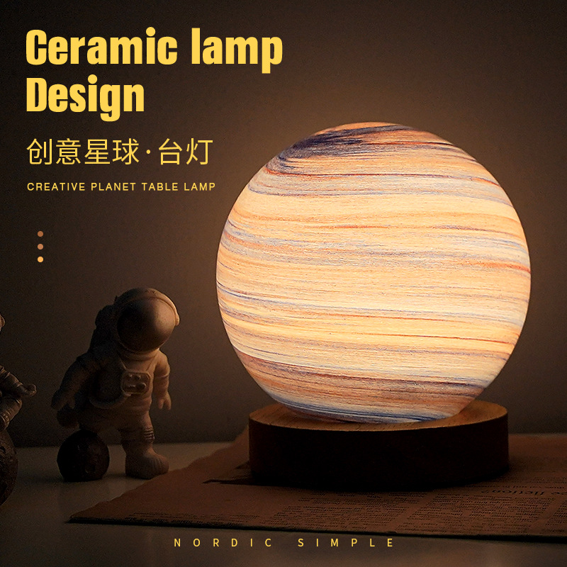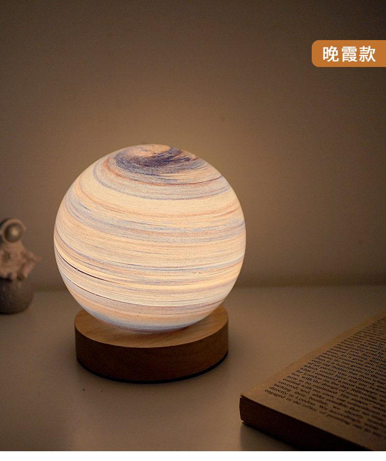북유럽 테이블 램프 침실 수면 분위기 램프 침대 옆 램프 유리 밤 램프 별이 빛나는 빛 달 램프 행성 램프 선물