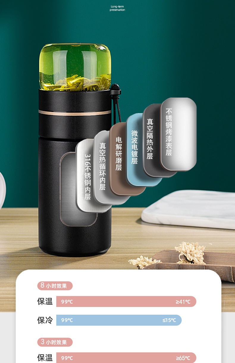 316 스테인리스 보온병 고급 선물 남성용 차컵 차와 물 분리 티컵 선물 세트 도매