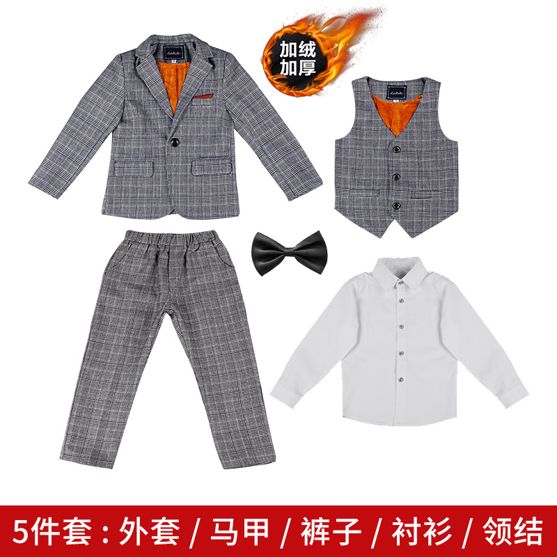 가을과 겨울 새로운 소년 꽃 소녀 결혼식 호스트 성능 원피스 어린이 세트 한국어 단색 격자 무늬 세트 세트