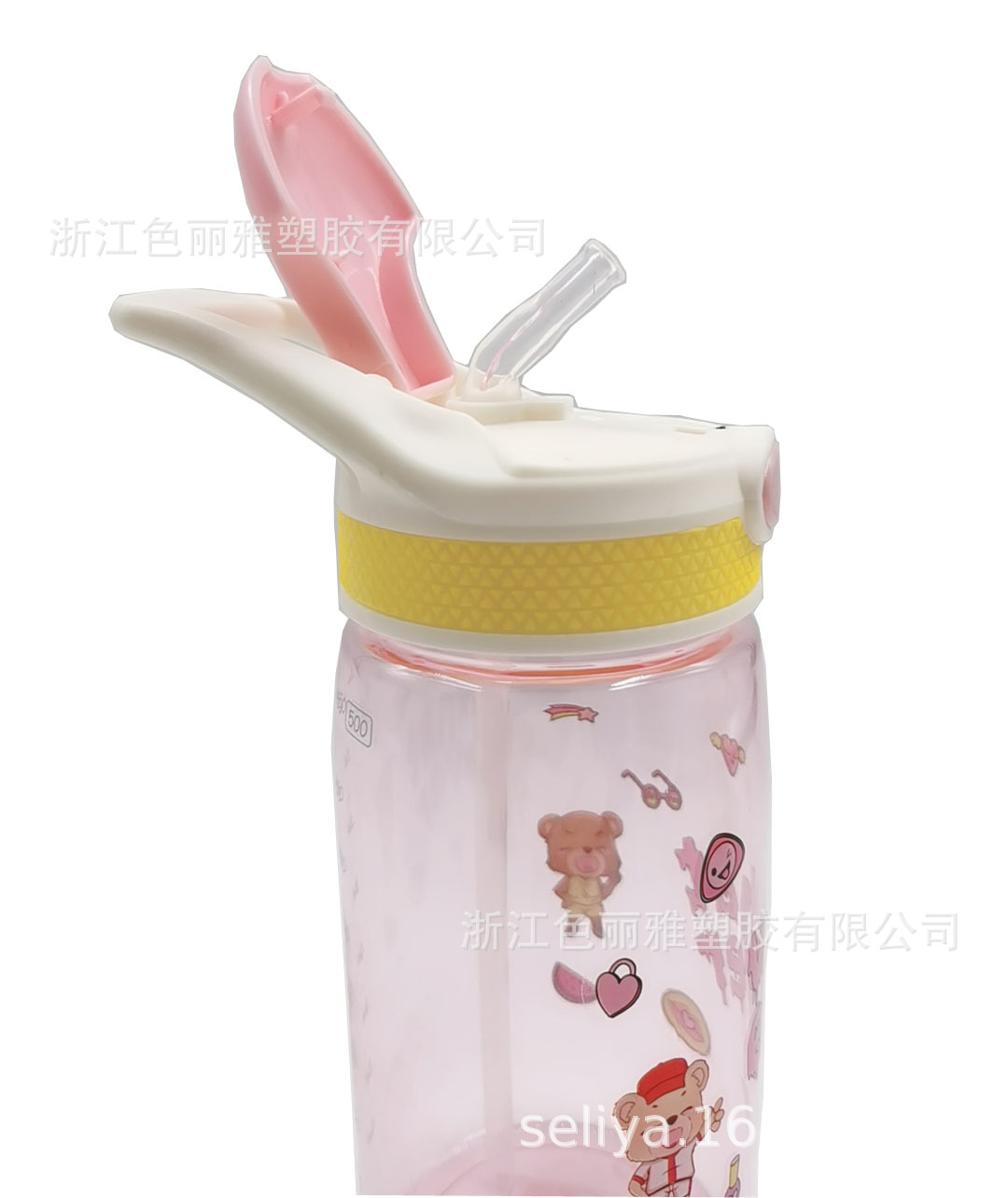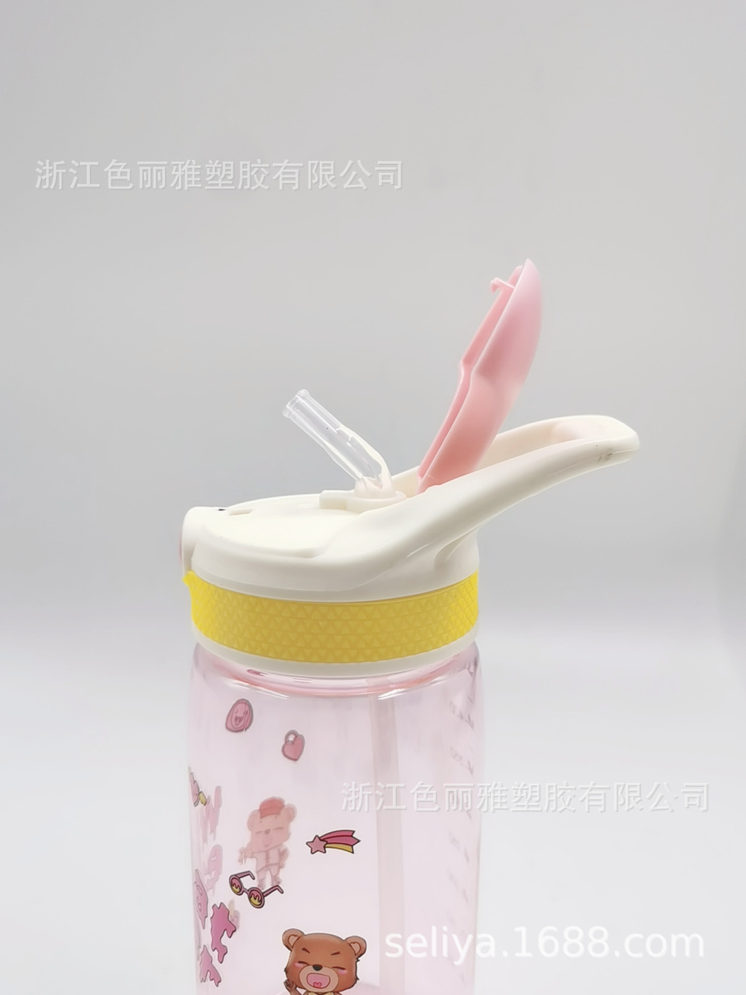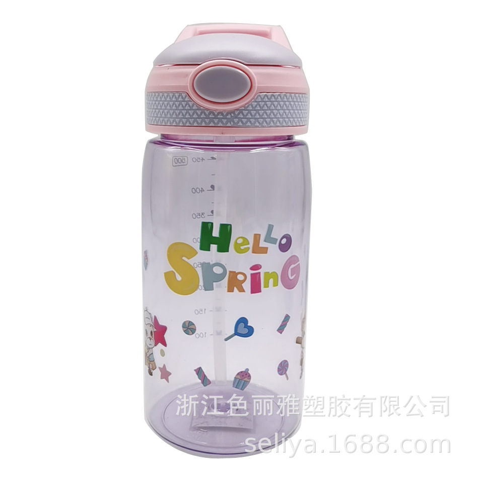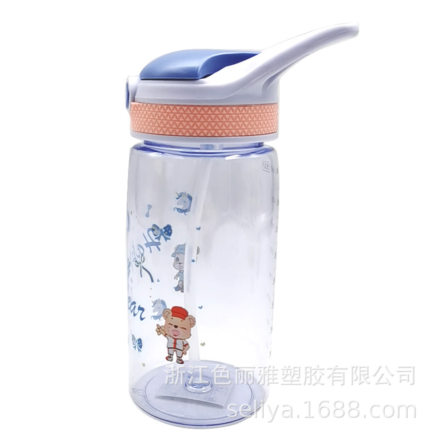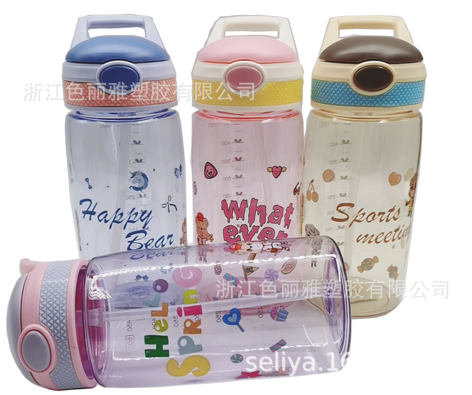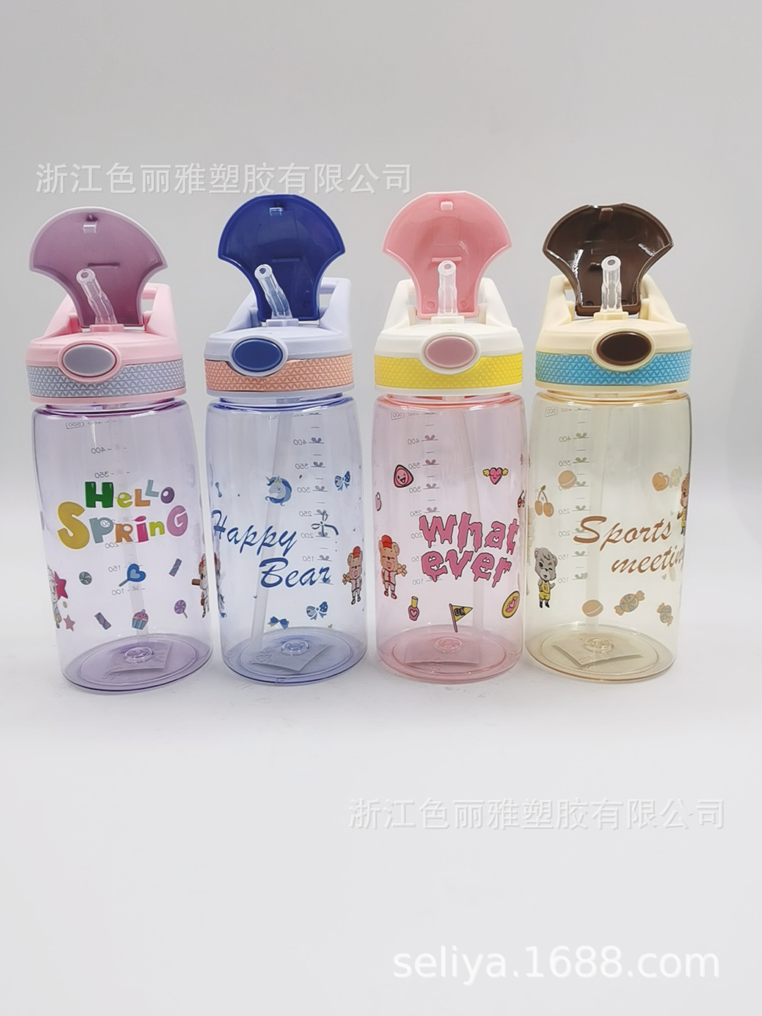 어린이 물 컵 휴대용 바운스 흡입 컵 만화 플라스틱 물 하나 휴대용 물 컵 야외 스포츠 물병