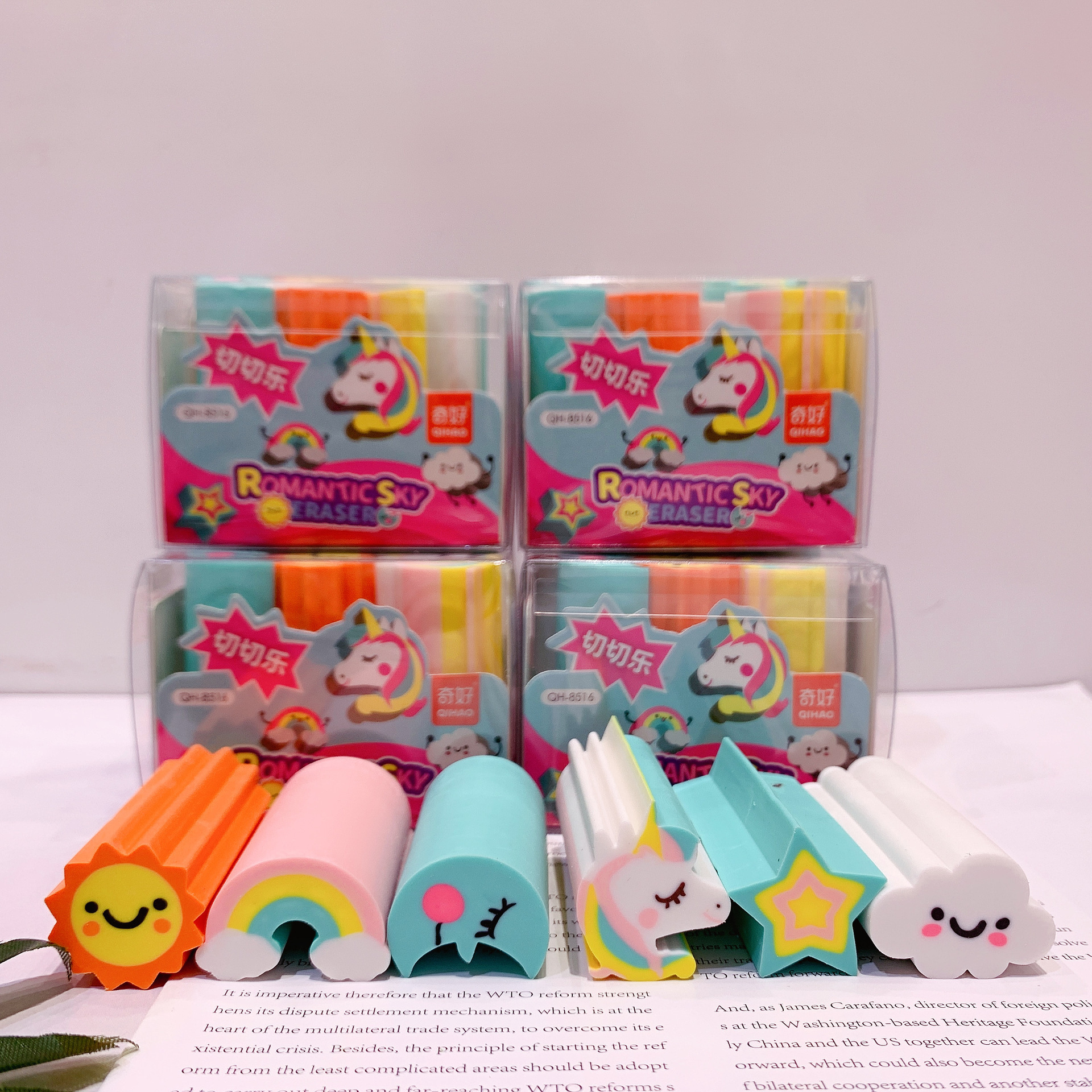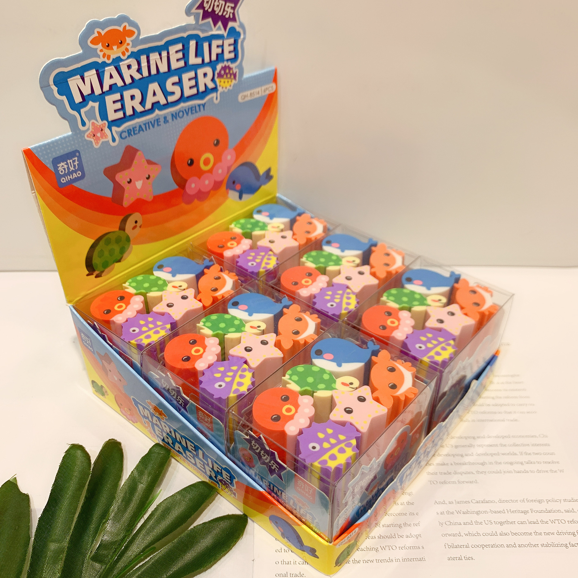 Qihao 유니콘 만화 지우개 귀여운 슬라이스 지우개 해양 동물 학생 문구 수정 지우개