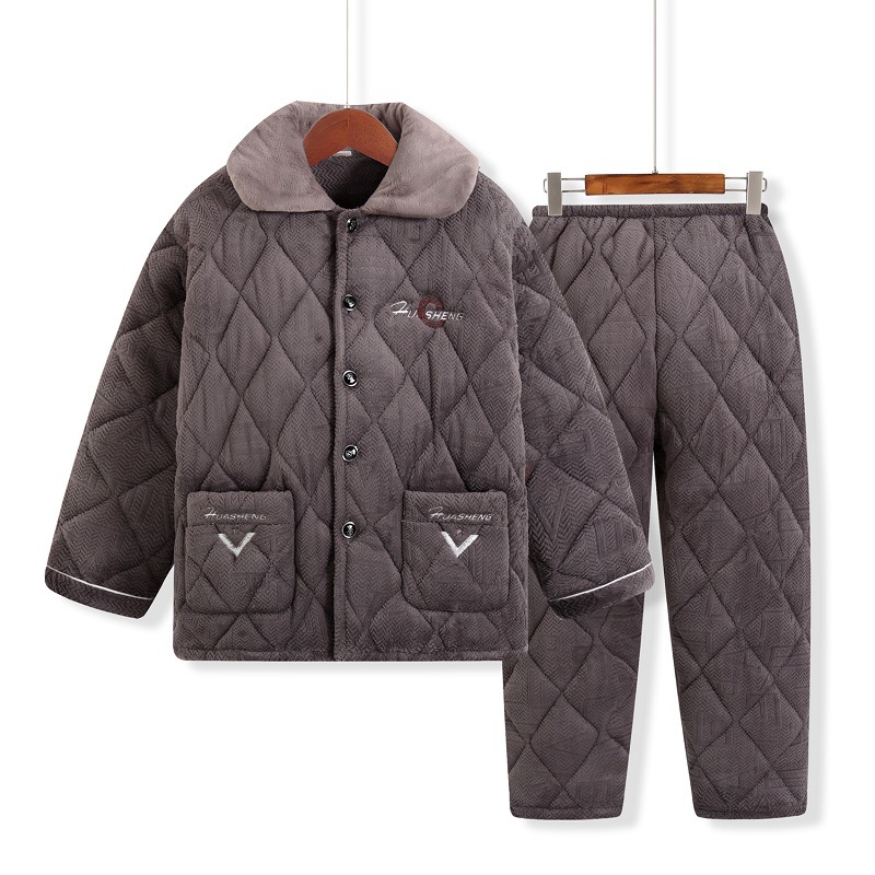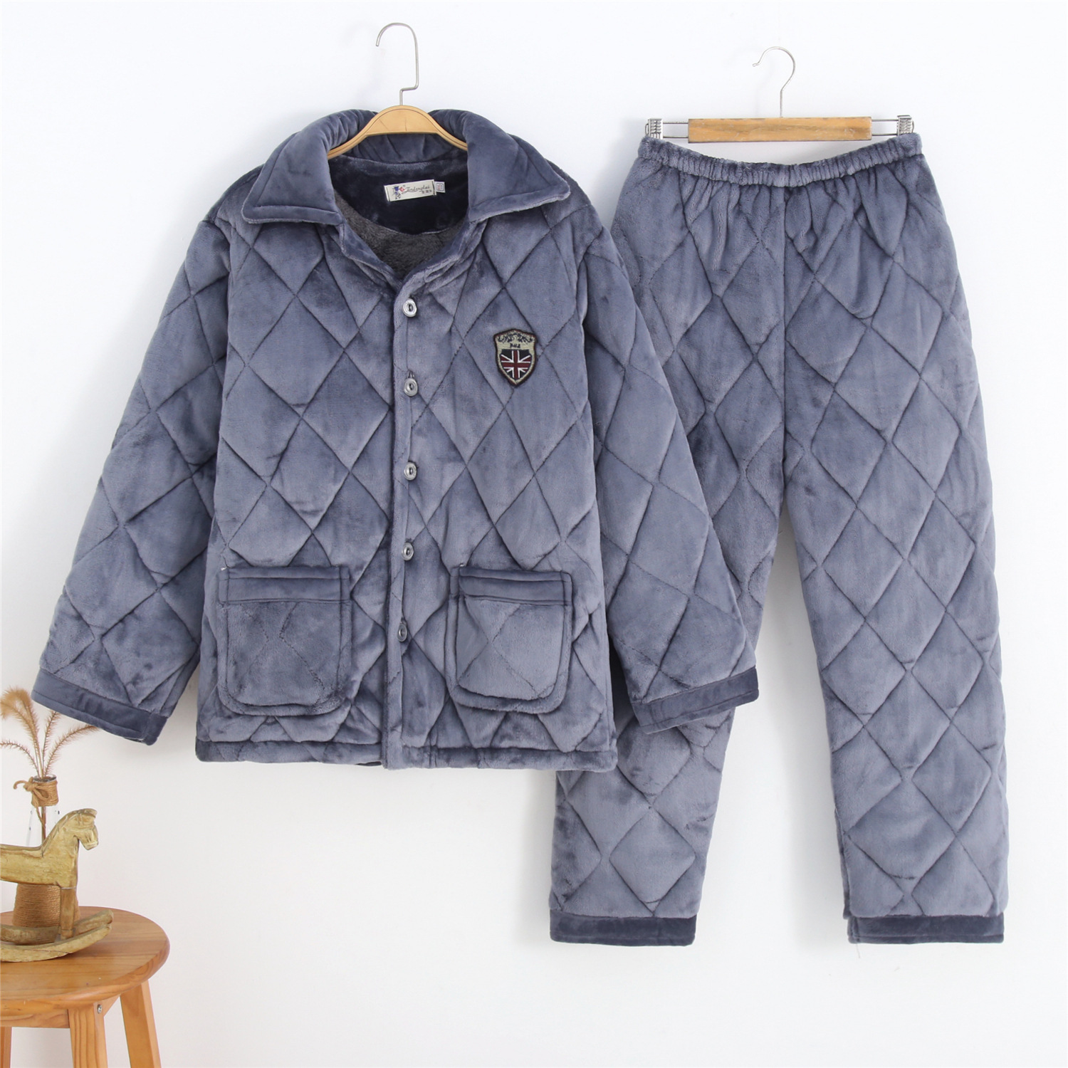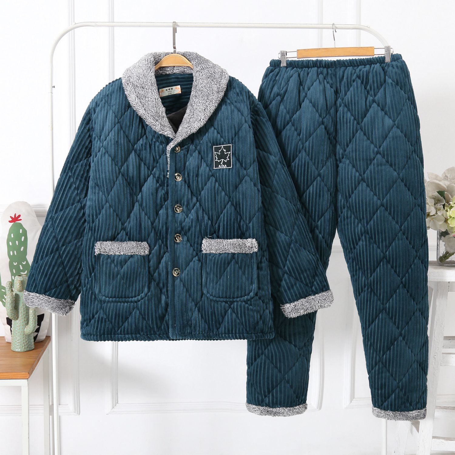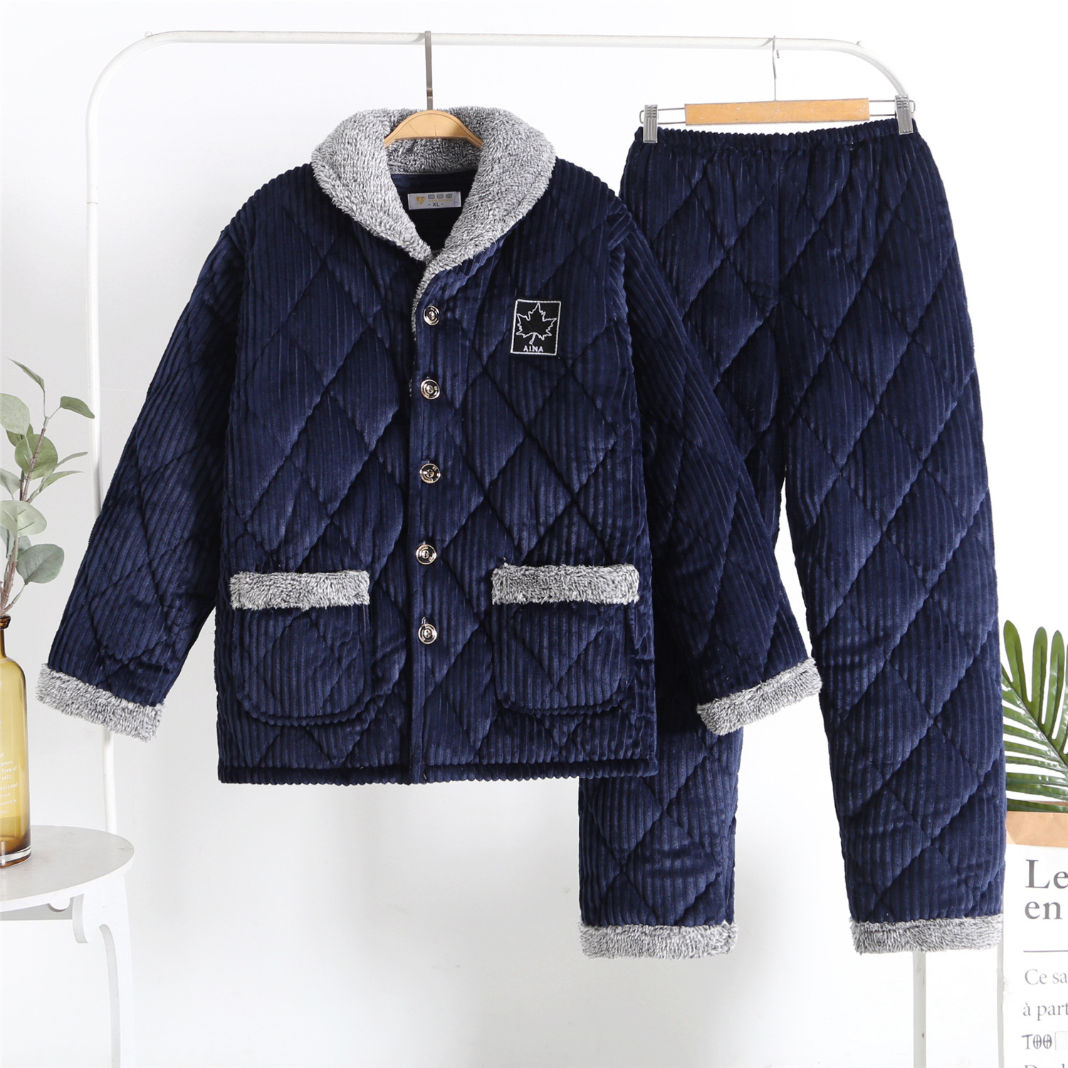중년 및 노인 남성 잠옷 가을과 겨울 산호 양털 3 층 누비 이불 겨울 두꺼운 기모 중년 아버지의 면 패딩 재킷
