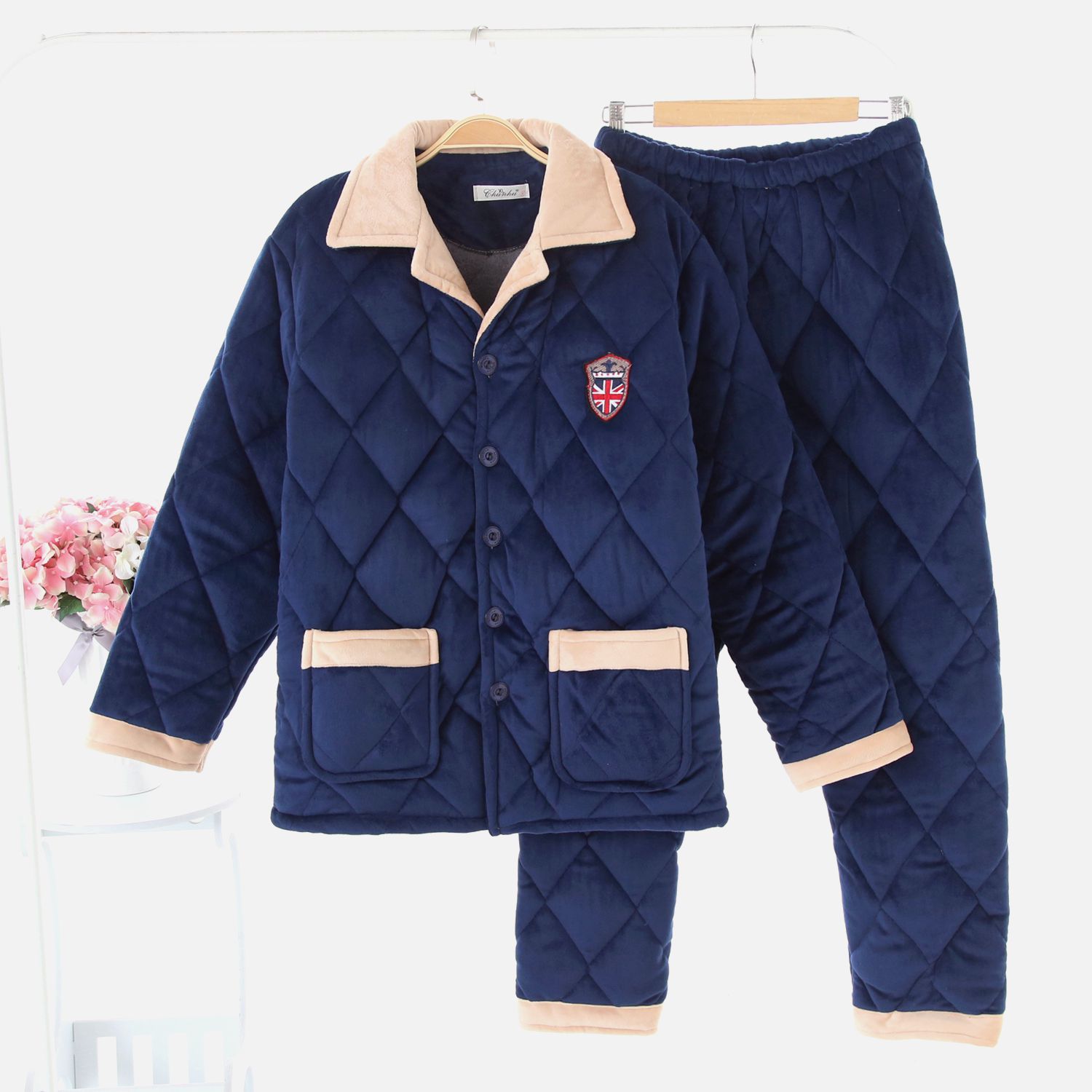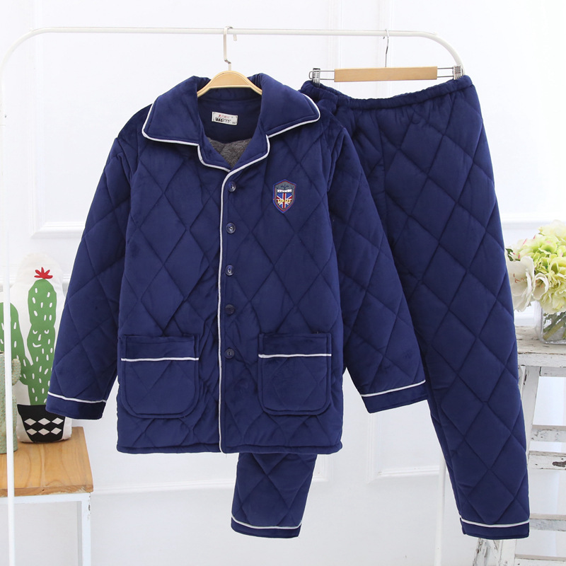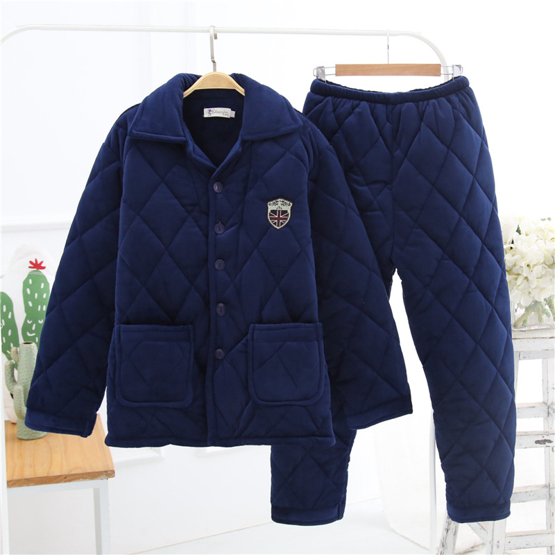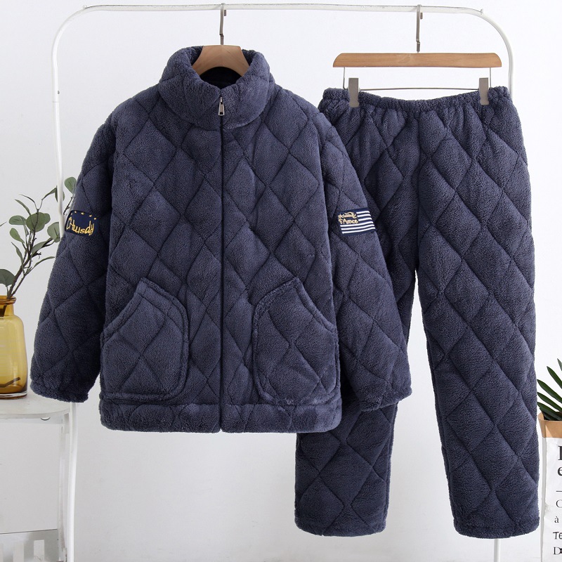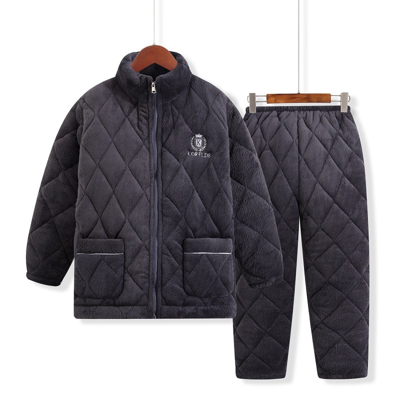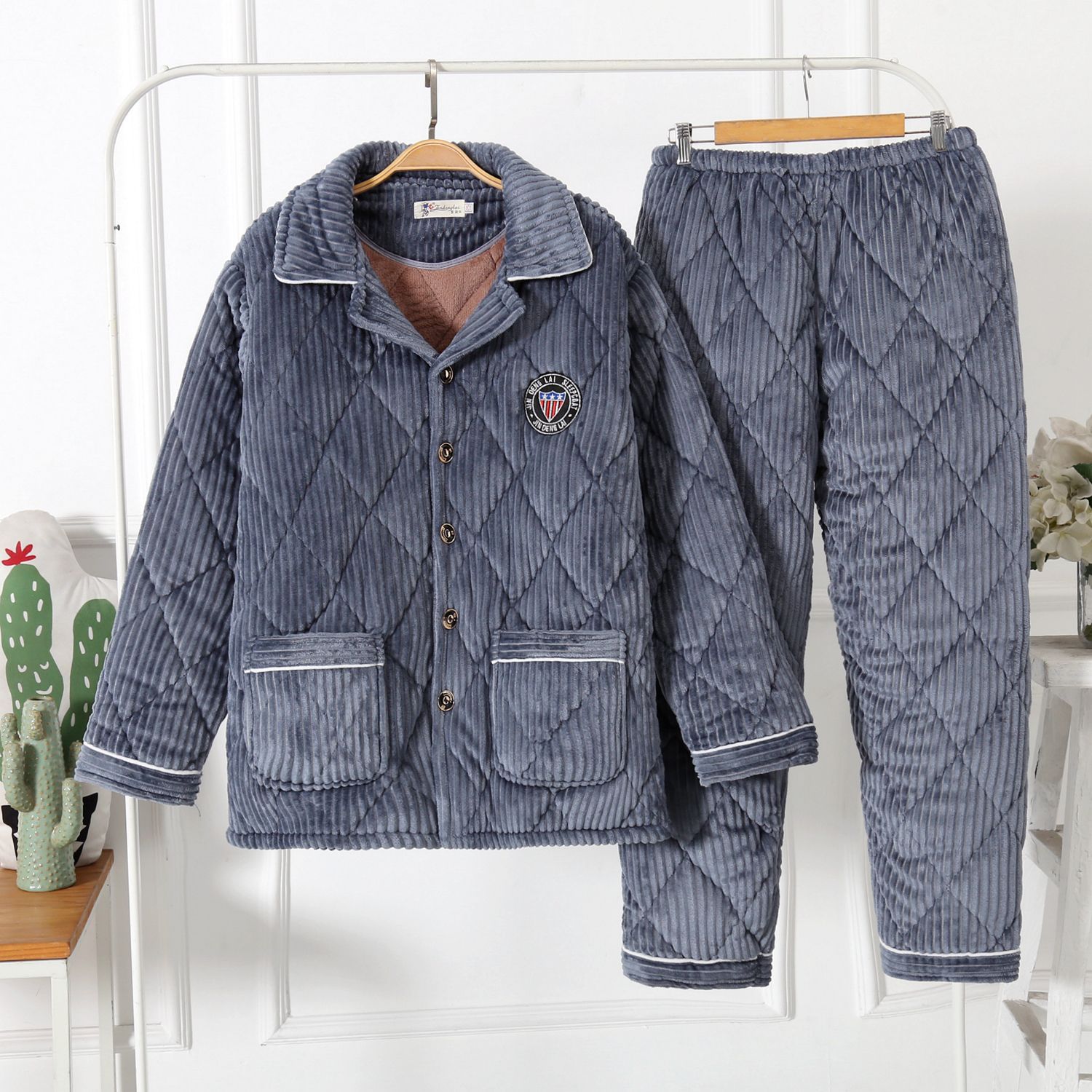 중년 및 노인 남성 잠옷 가을과 겨울 산호 양털 3 층 누비 이불 겨울 두꺼운 기모 중년 아버지의 면 패딩 재킷