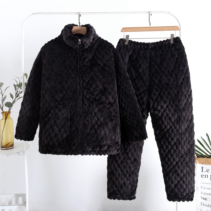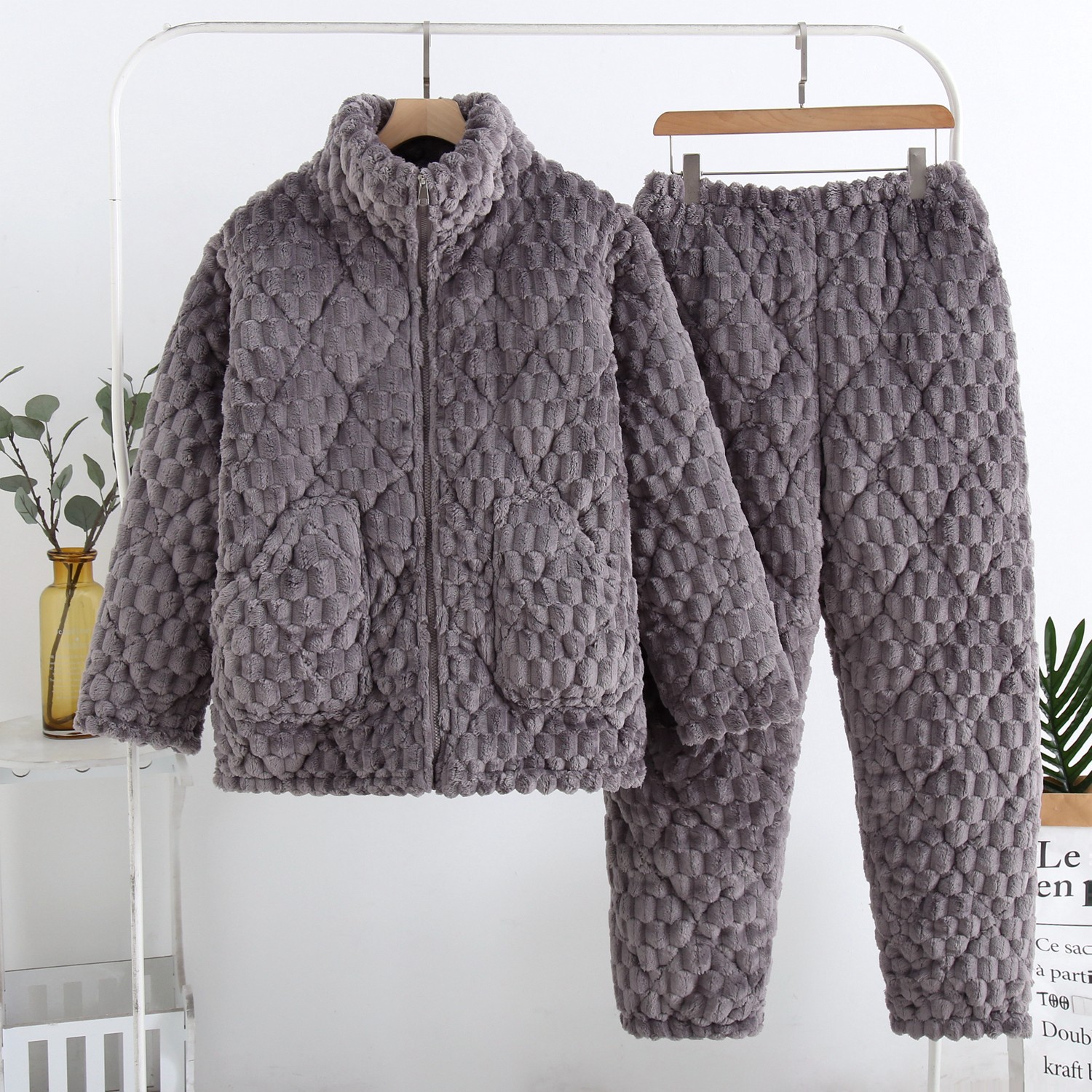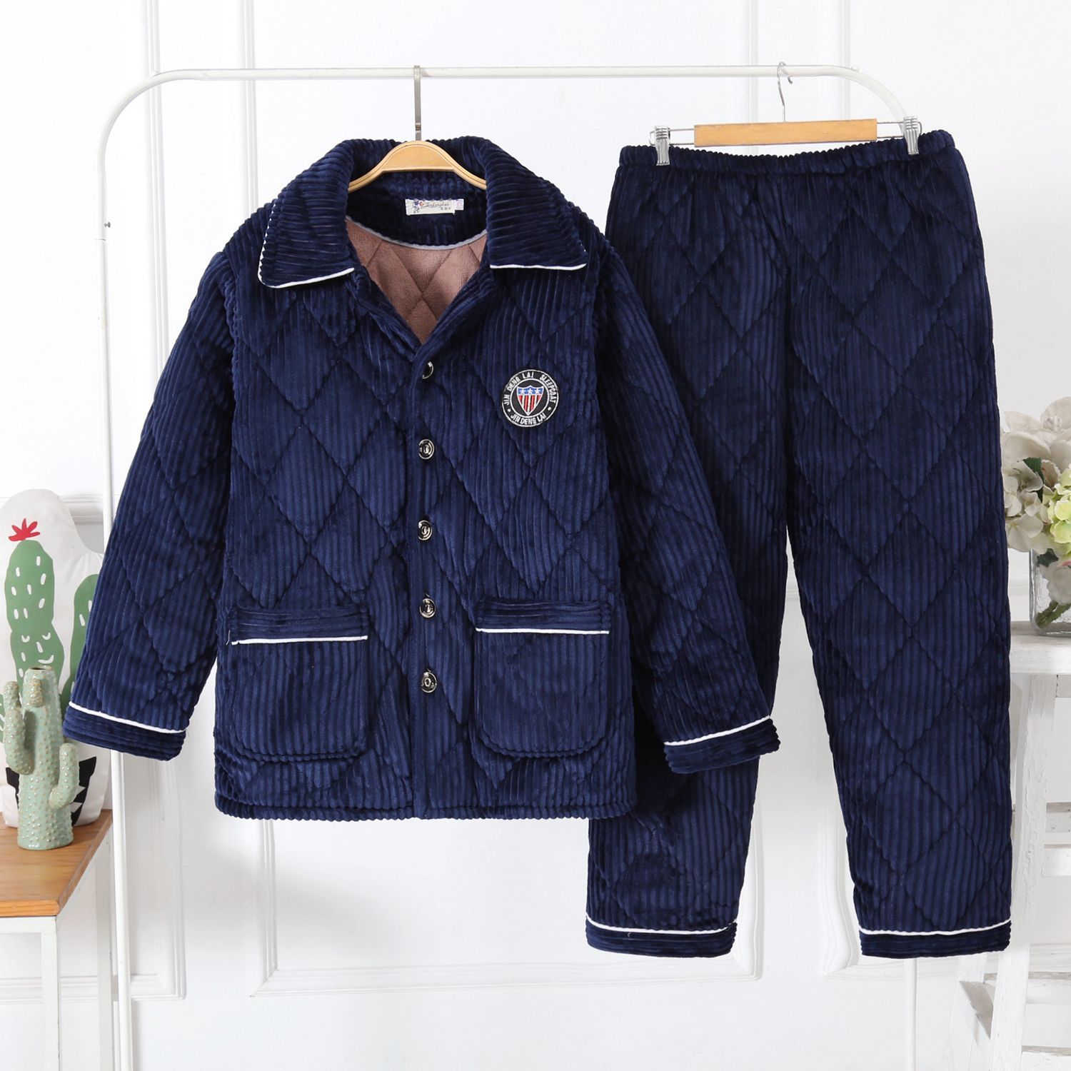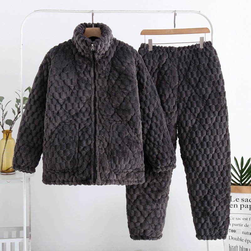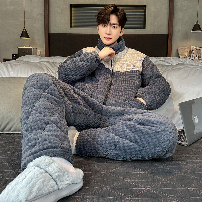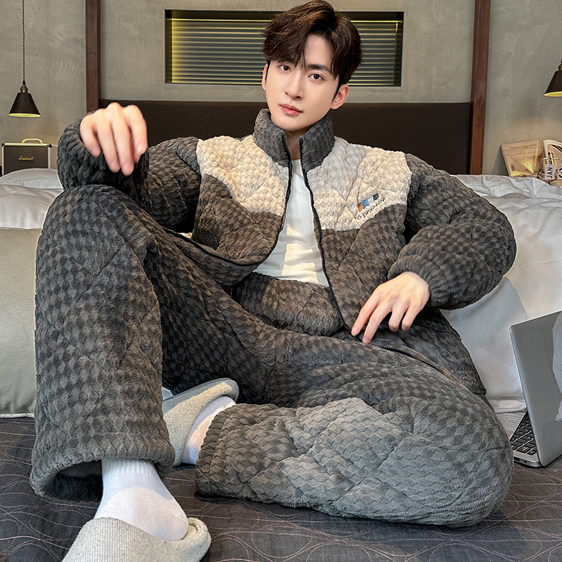 중년 및 노인 남성 잠옷 가을과 겨울 산호 양털 3 층 누비 이불 겨울 두꺼운 기모 중년 아버지의 면 패딩 재킷
