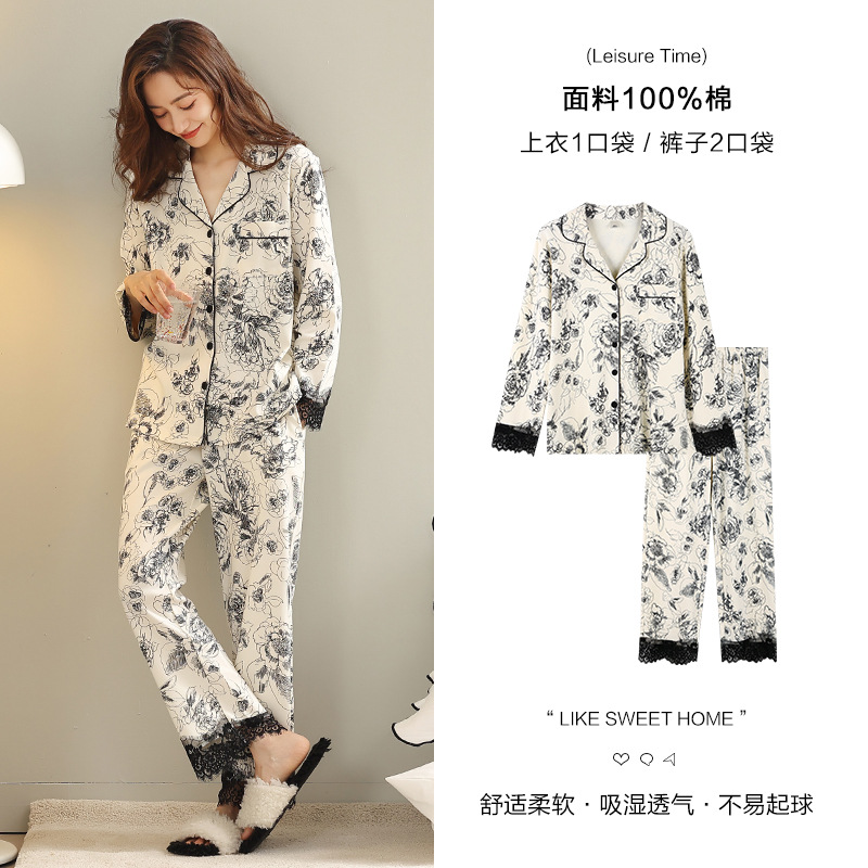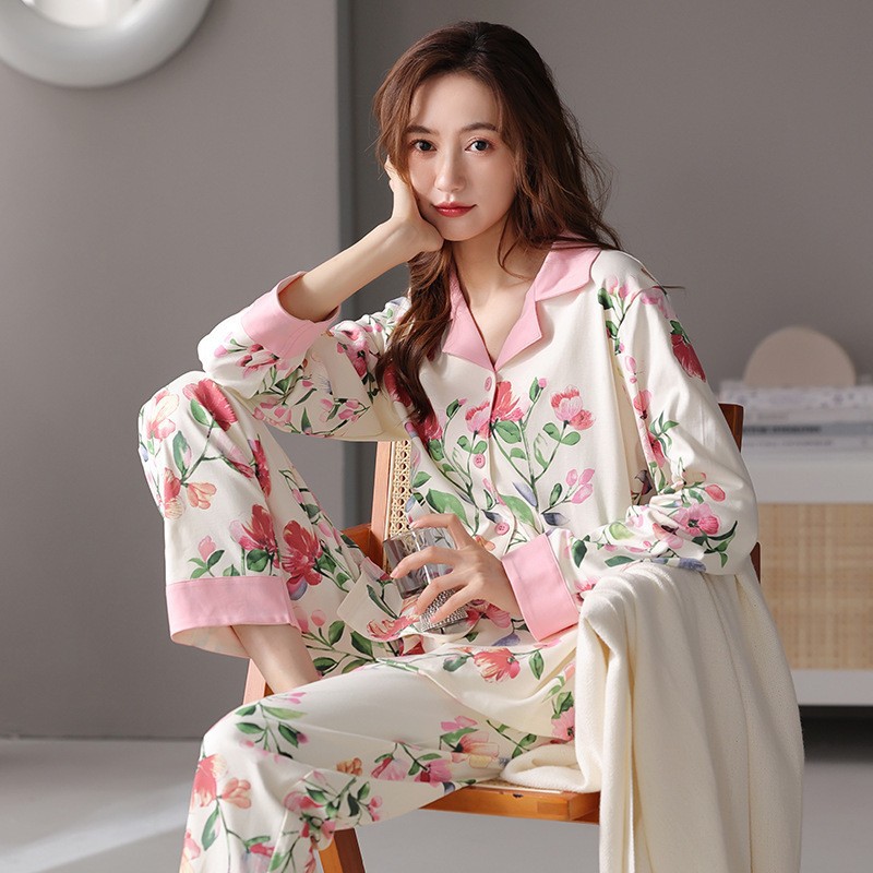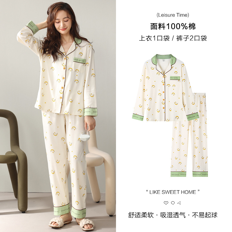 여성용 잠옷 봄 가을 순면 긴팔 2025년 신상 여성용 순면 얇은 여름 홈웨어 세트