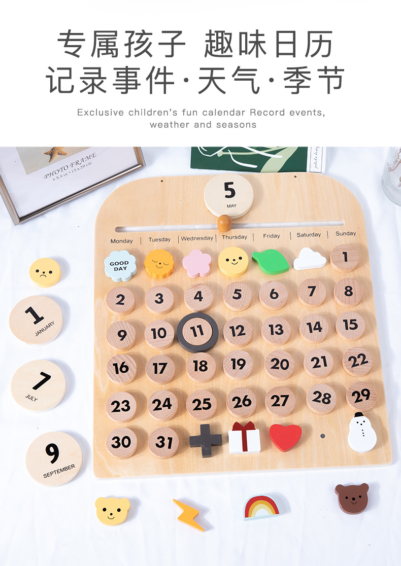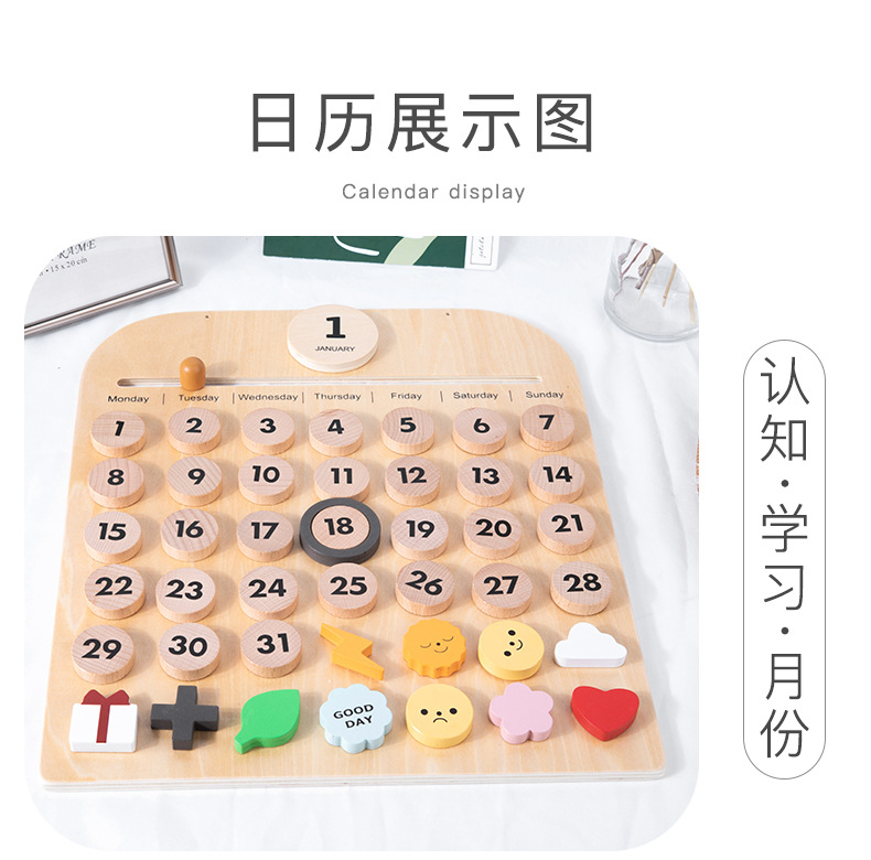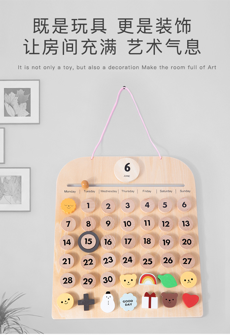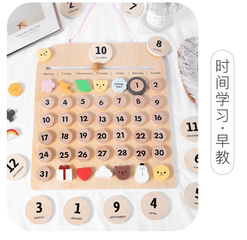 목재 달력판 몬테소리 교구 어린이방 장식품 너도밤나무 자석 달력 몬테소리 인증스토어 가기