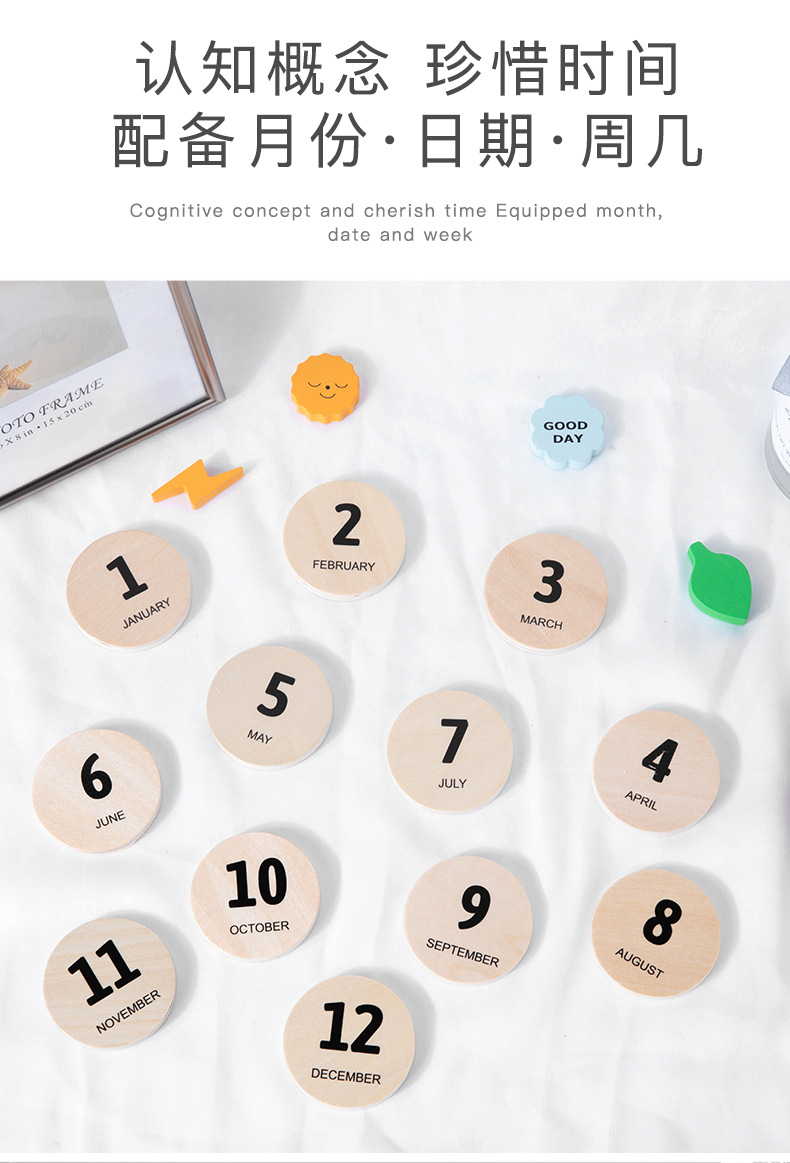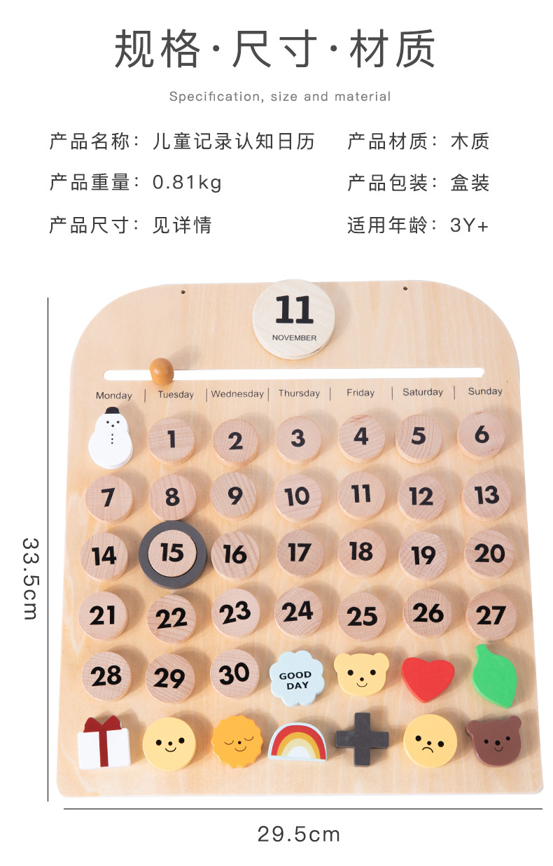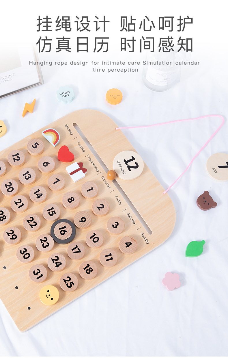 목재 달력판 몬테소리 교구 어린이방 장식품 너도밤나무 자석 달력 몬테소리 인증