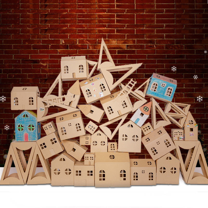 어린이 미니 종이 방 3D 입체 종이 방 DIY 창조적 인 크리스마스 오두막 수제 재료 유치원 제작스토어 가기