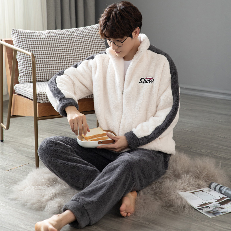 겨울 두꺼운 커플 잠옷 봉제 산호 양털 세트 2021 새로운 스타일 지퍼 캐주얼 남성과 여성의 가정 의류