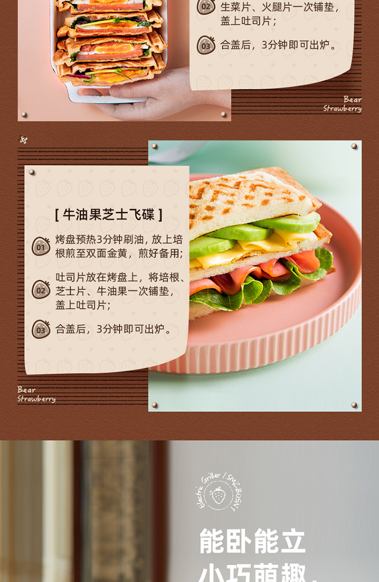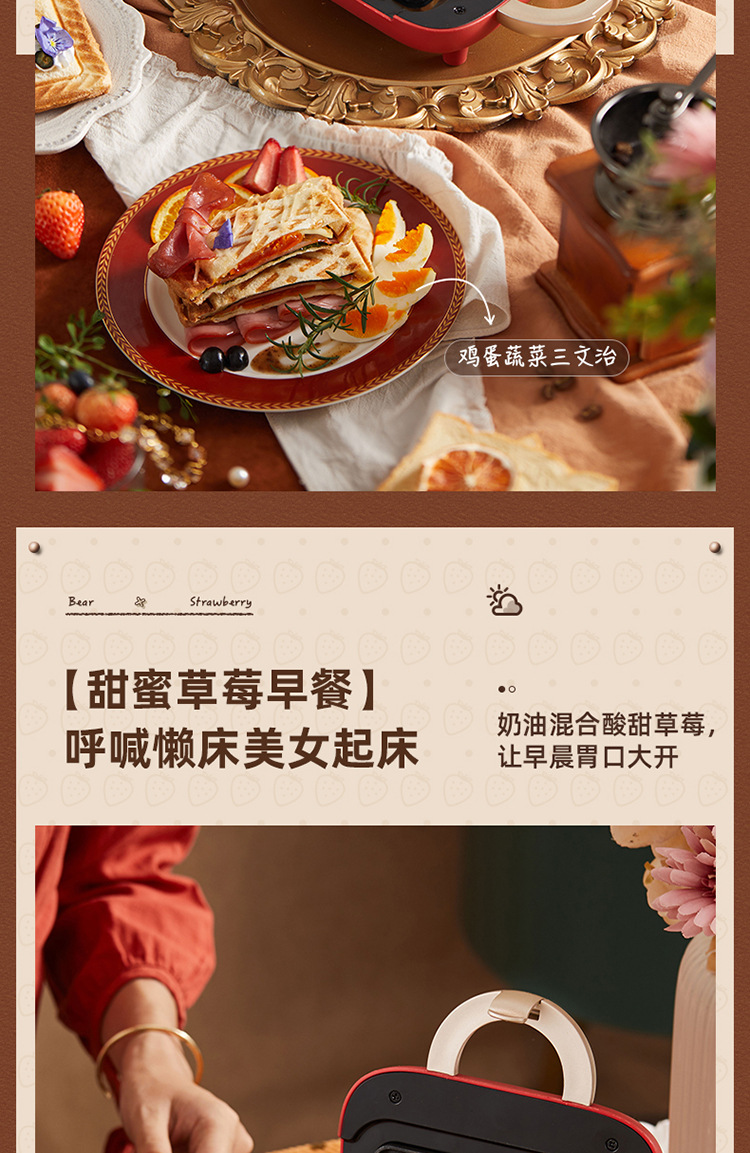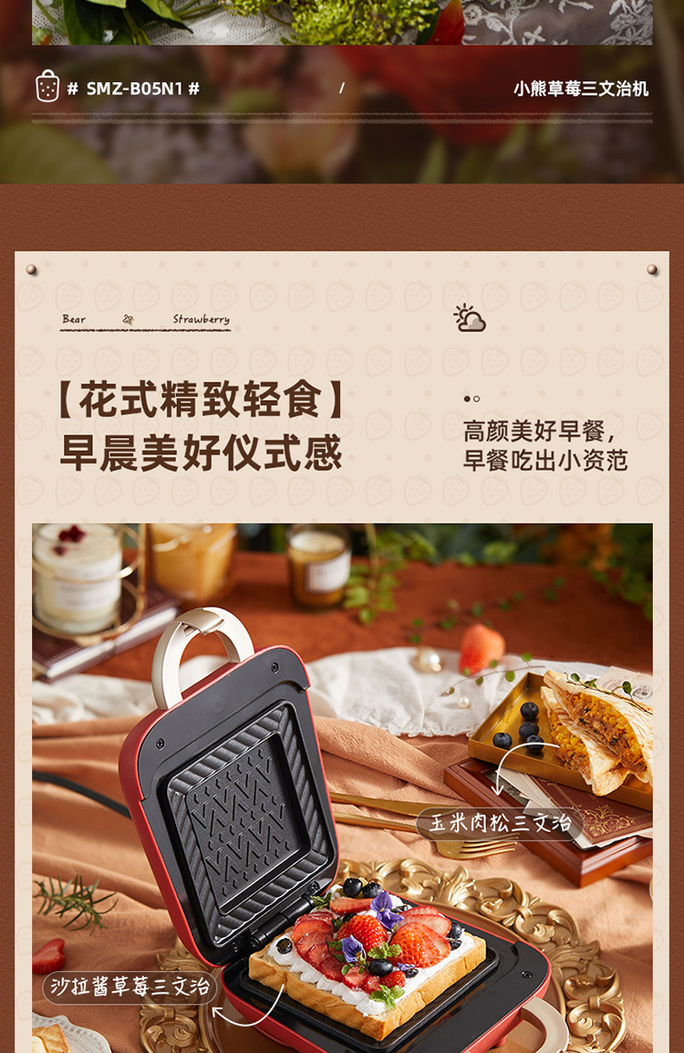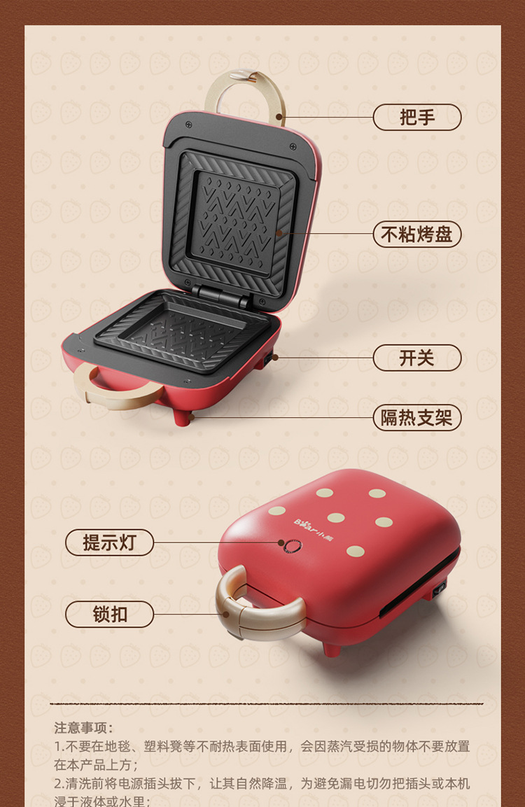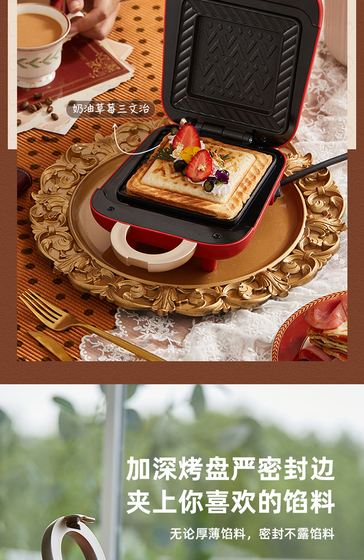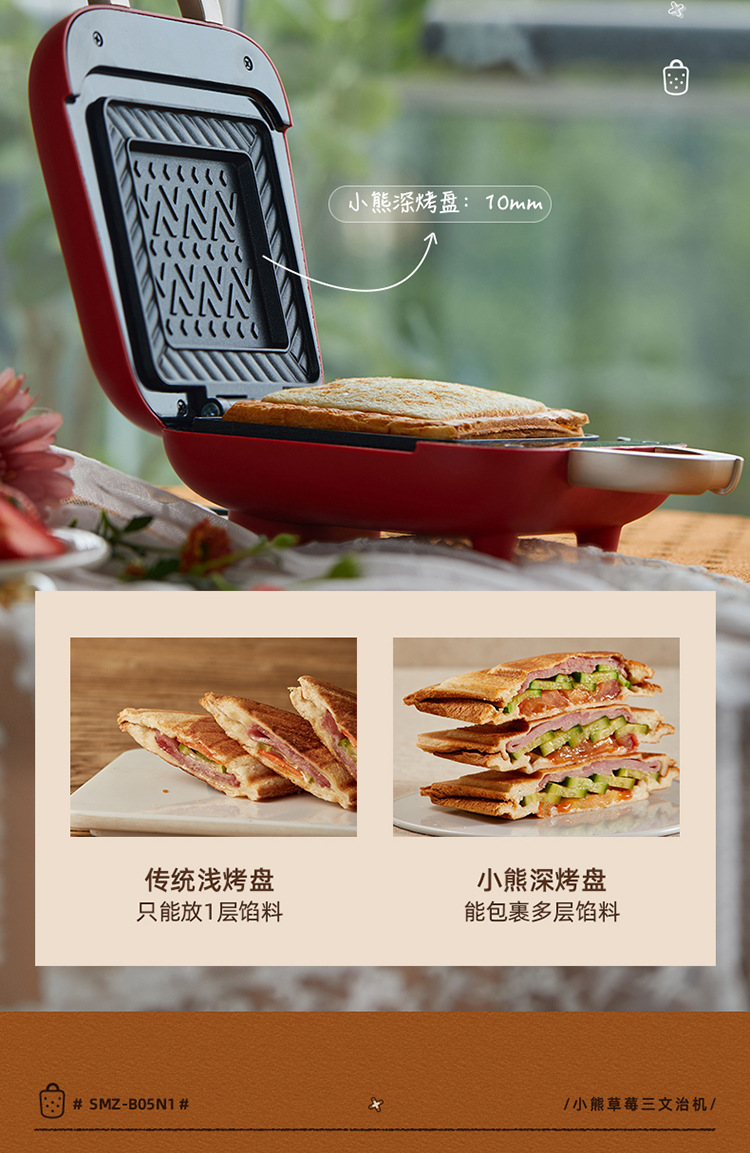 곰 SMZ-B05N1 샌드위치 메이커 기숙사 조식 기계 양면 가열 자동 가장자리 밀봉 붙지 않는 토스트