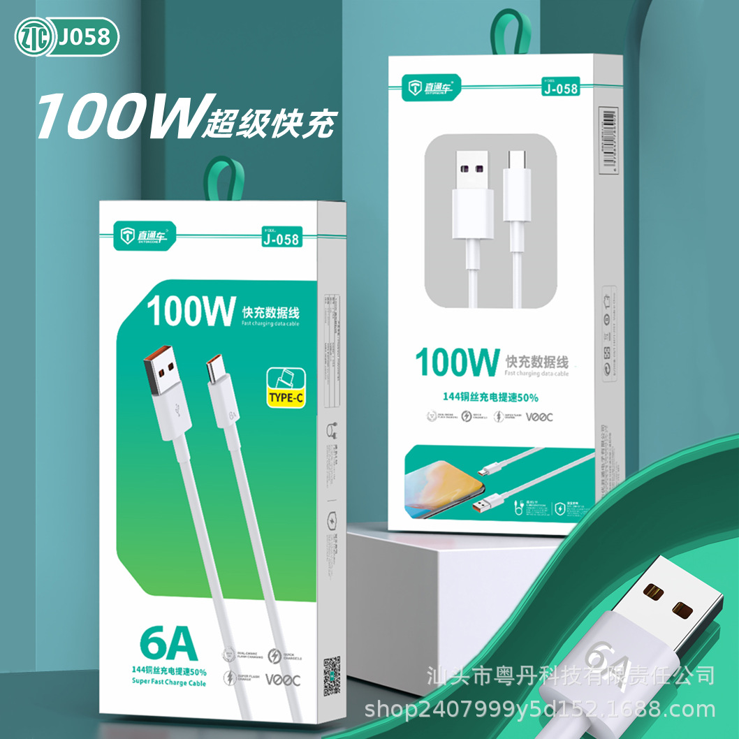 기차를 통해 J058 플래시 충전 데이터 라인 66W 안드로이드 화웨이 타입 C 전화 초고속 충전 라인