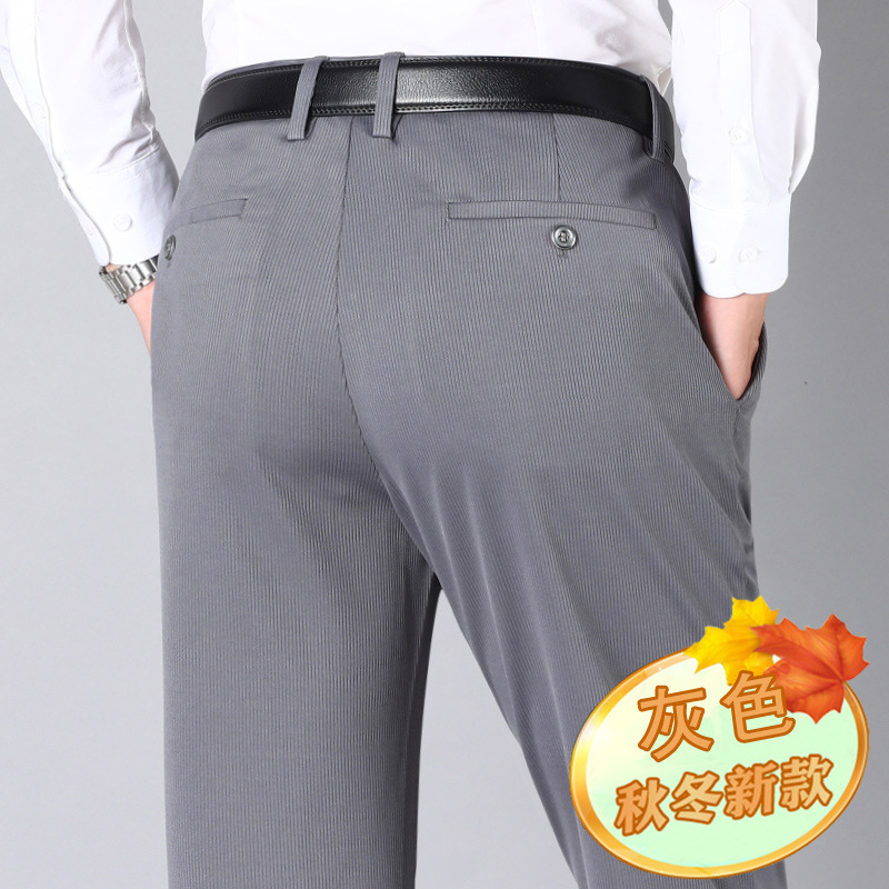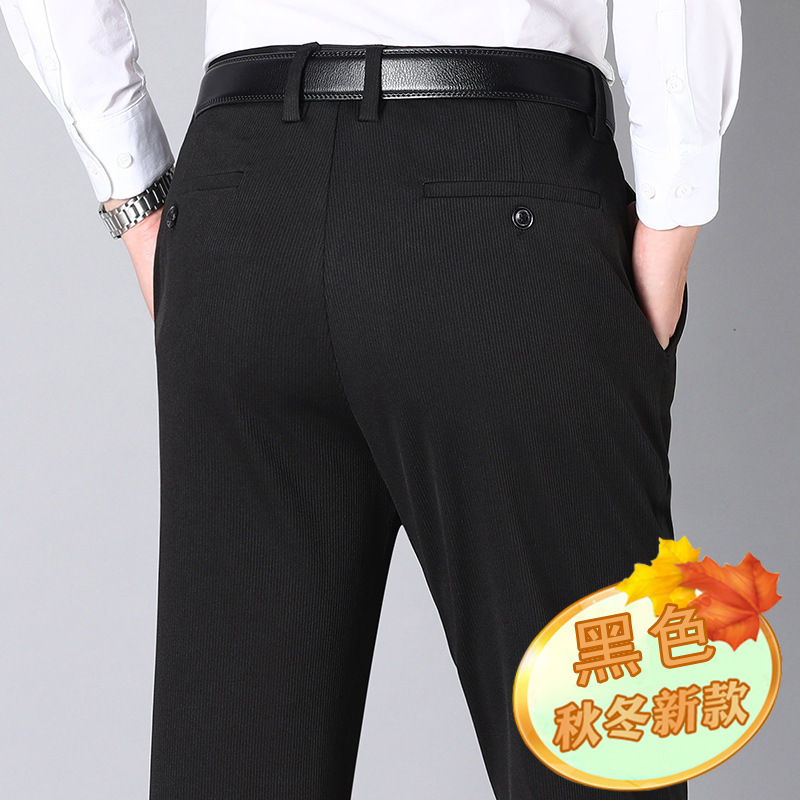 가을과 겨울 남성 두꺼운 탄성 캐주얼 바지 스트레이트 남성 바지 중년 남성 캐주얼 바지 비즈니스 남성 긴 바지