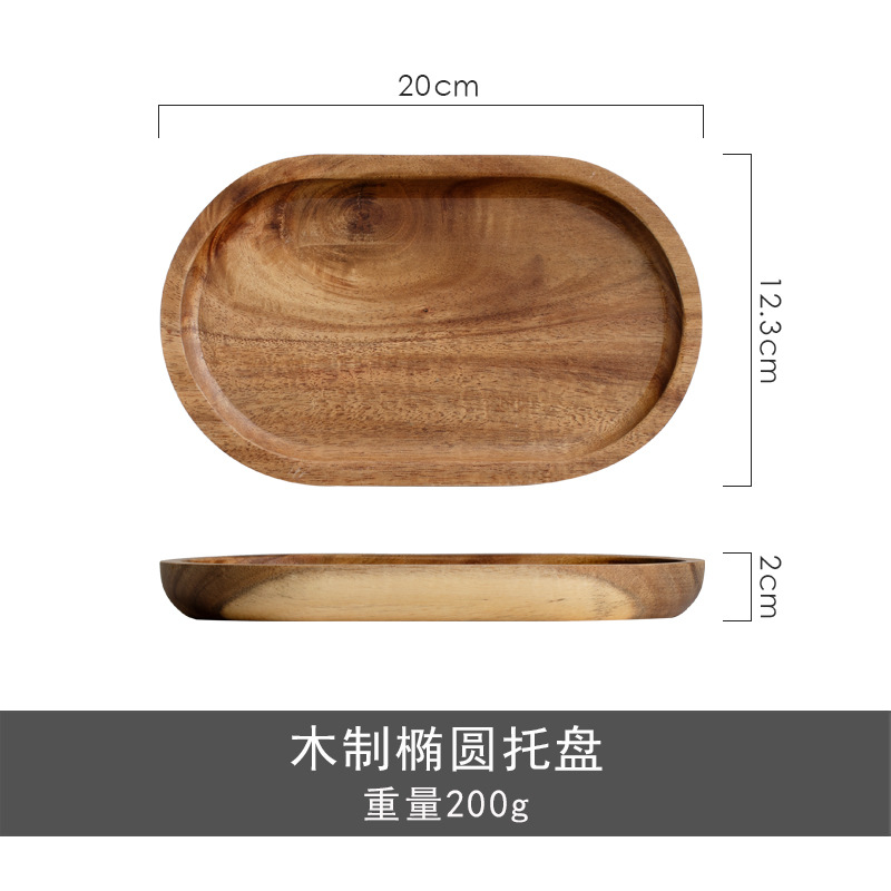일본식 가정용 아카시아 나무 타원형 트레이 천연 단단한 나무 디너 플레이트 가정용 오후 차 과일 스낵 보관 접시스토어 가기