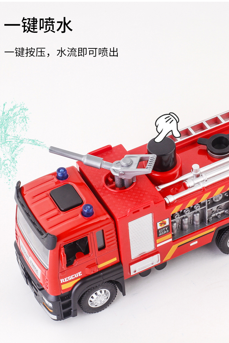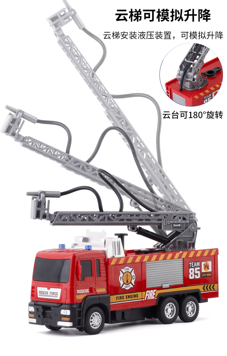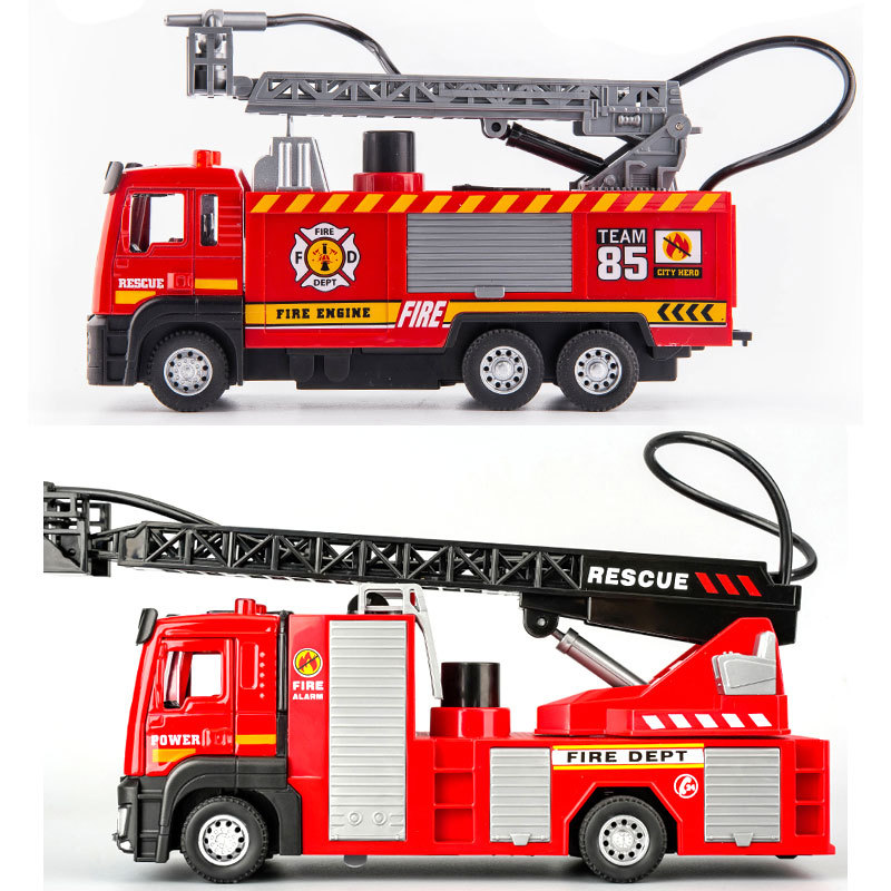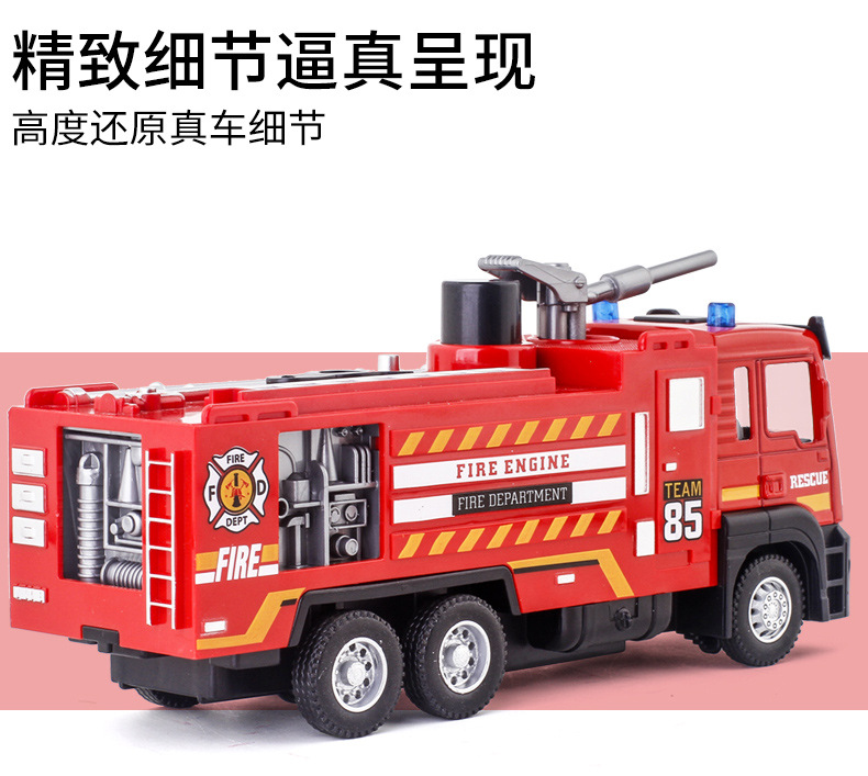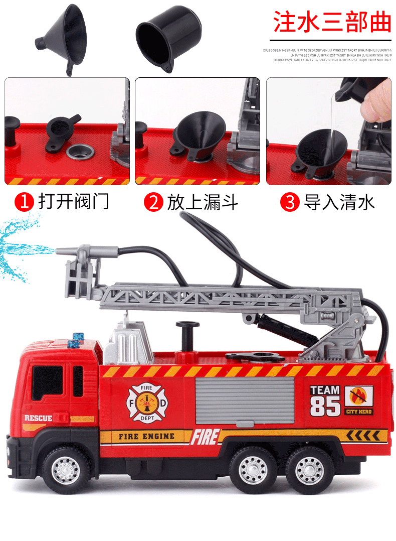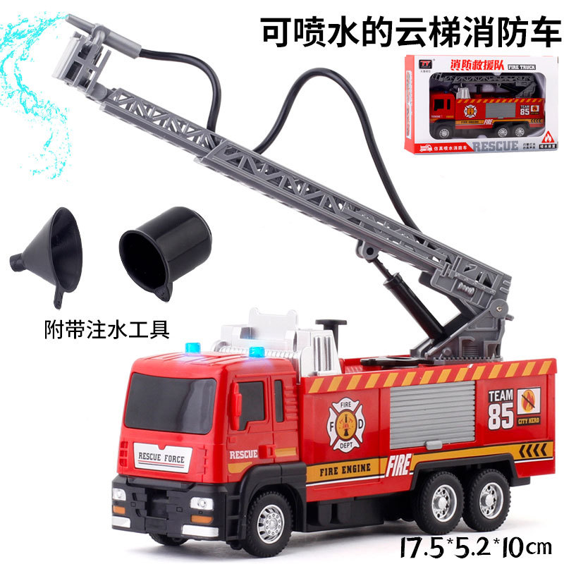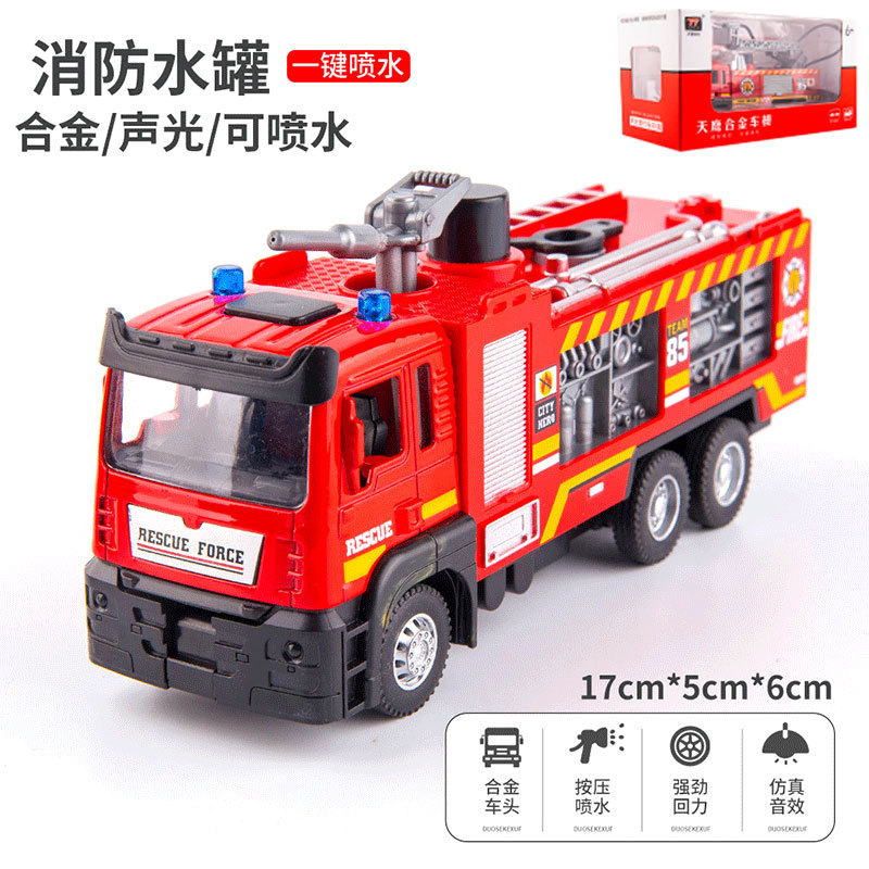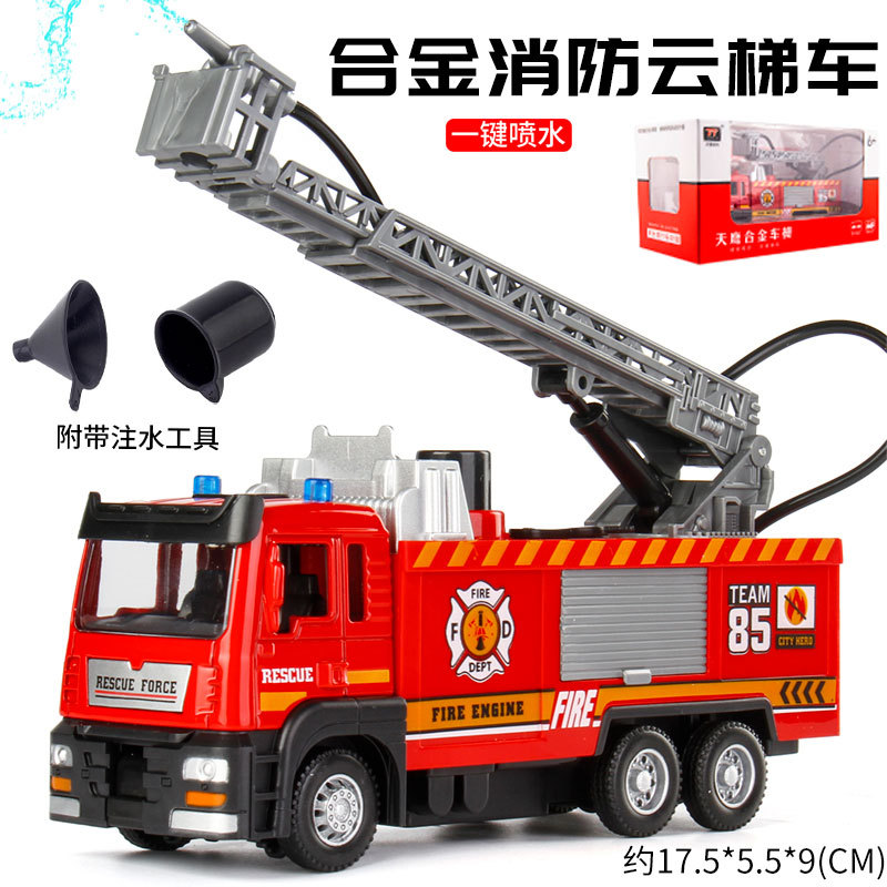 Tianying은 물 합금 시뮬레이션 사다리 물 탱크 소방차가 물 소리와 빛을 다시 토이 자동차 모델을 강제 할 수 있습니다스토어 가기