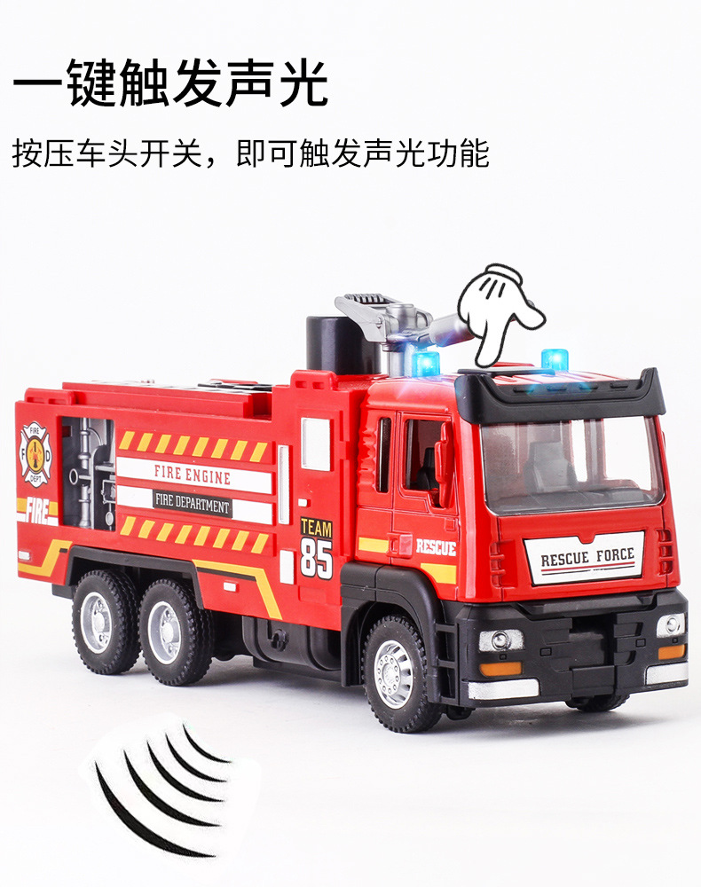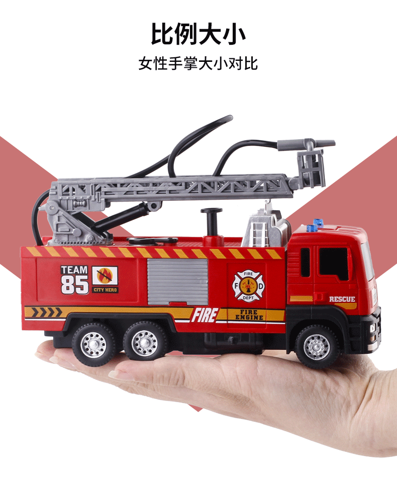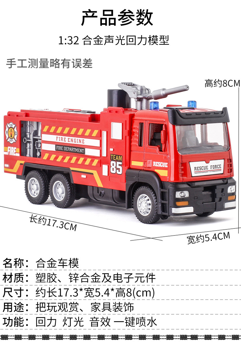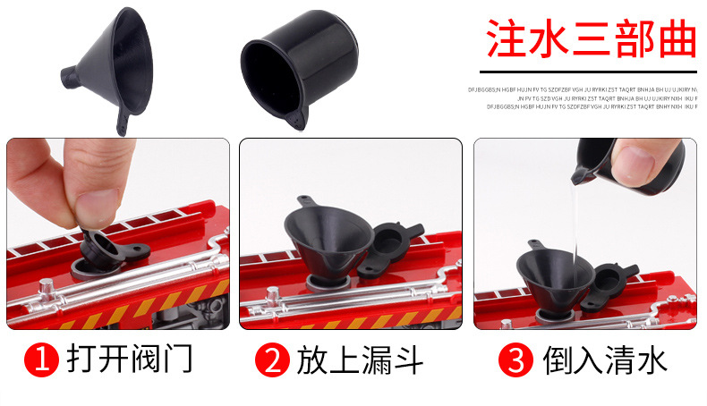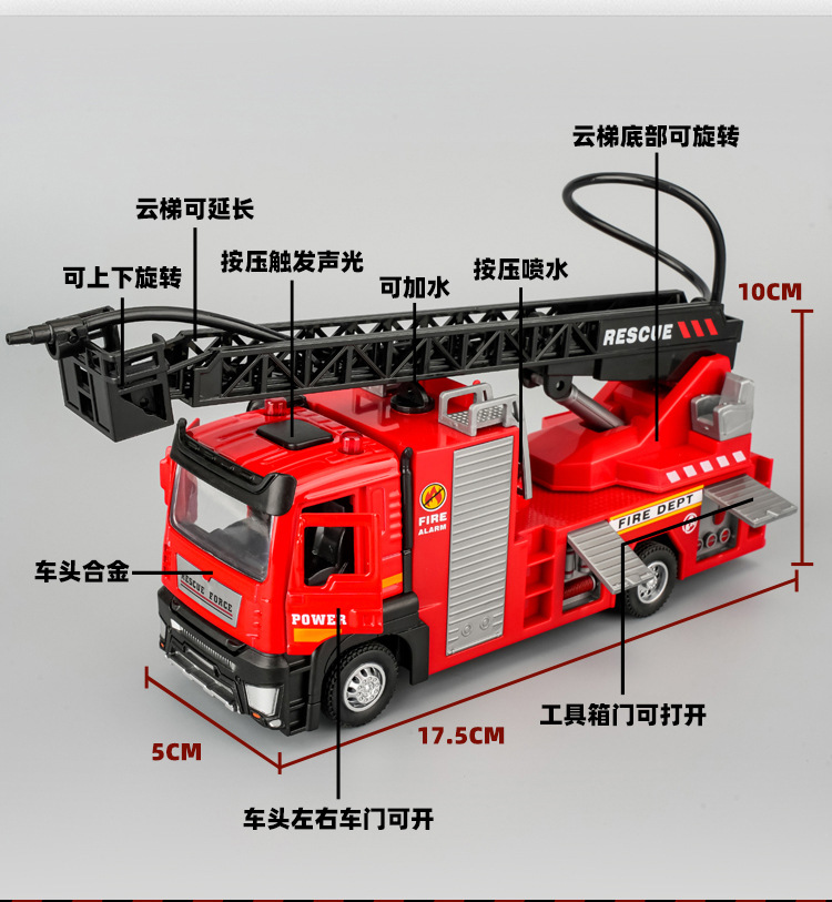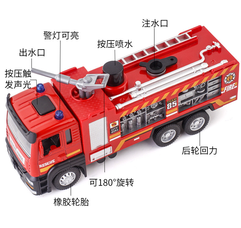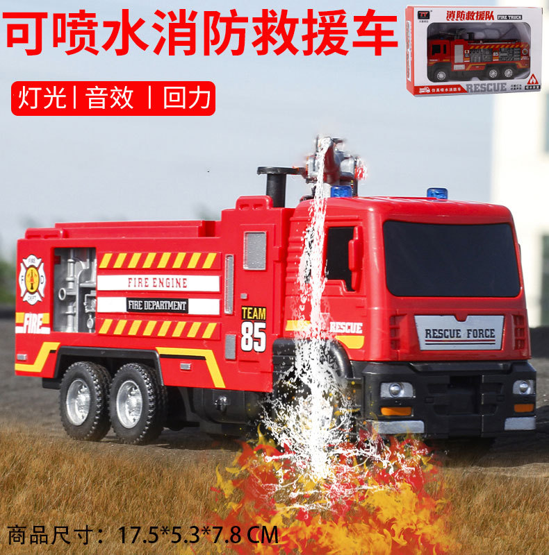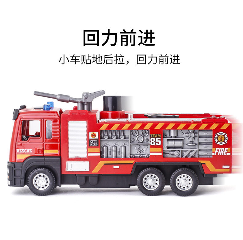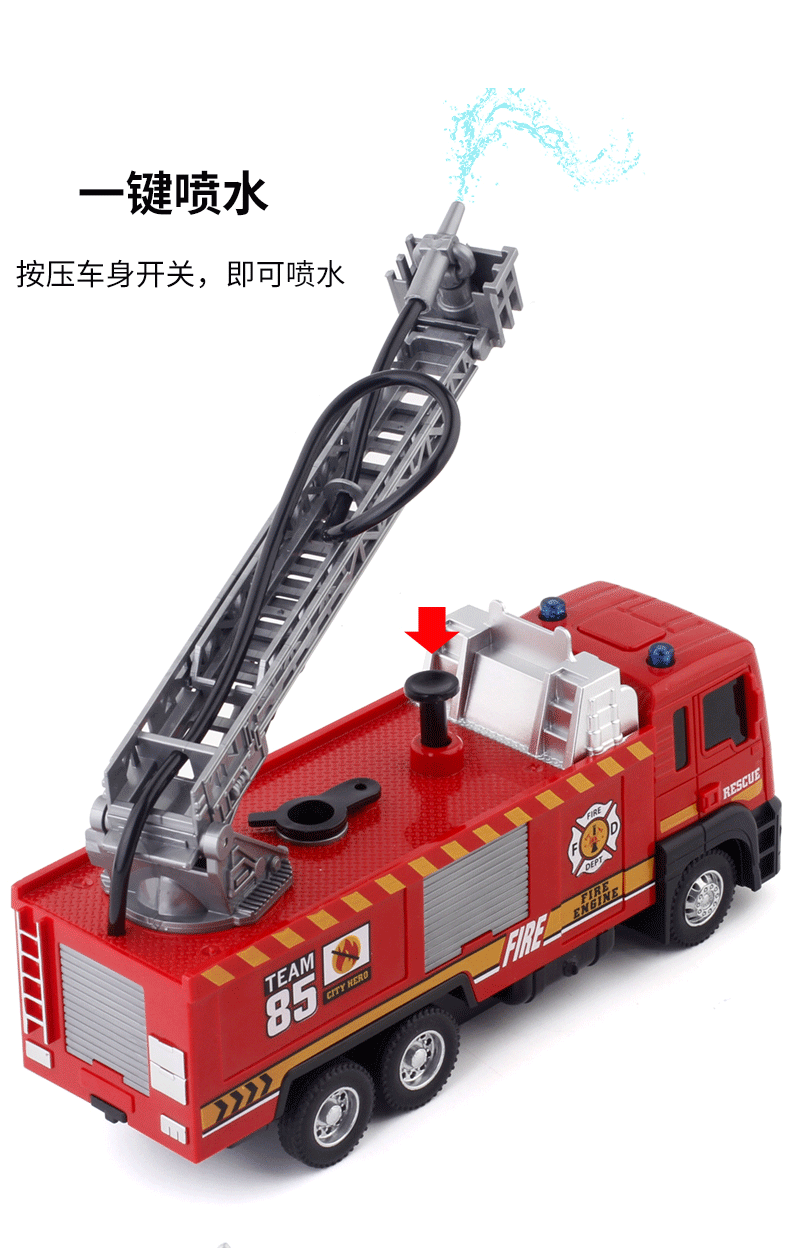 Tianying은 물 합금 시뮬레이션 사다리 물 탱크 소방차가 물 소리와 빛을 다시 토이 자동차 모델을 강제 할 수 있습니다스토어 가기