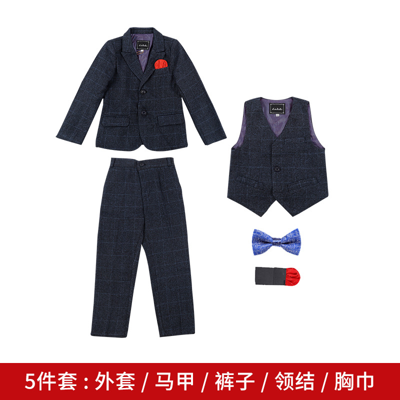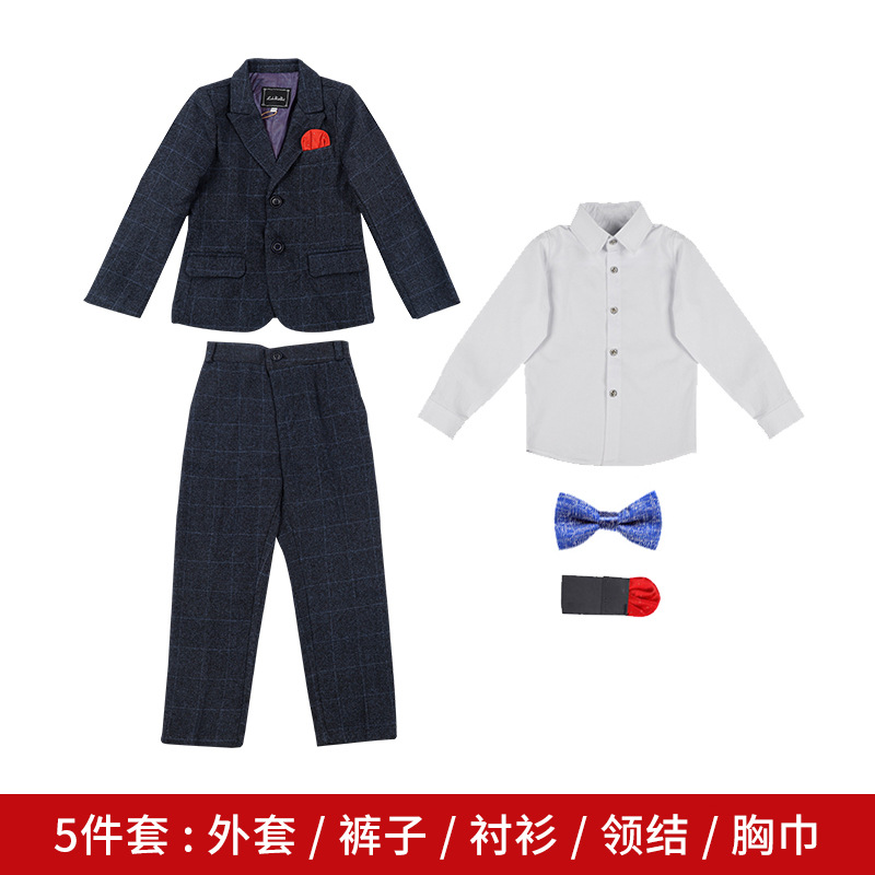 가을과 겨울 새 소년의 한국식 단색 격자 무늬 작은 세트 어린이 피아노 호스트 연설 공연 원피스 3 종 세트