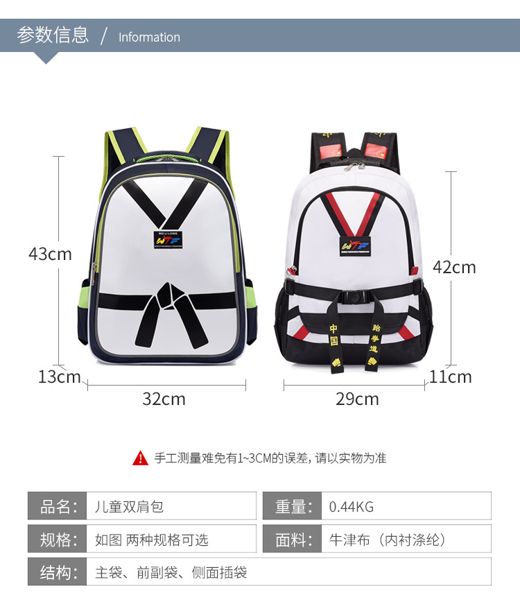 새로운 태권도 가방 어린이 책가방 남아 여아 태권도 한국판 도매 백팩 로고 인쇄 가능 배낭