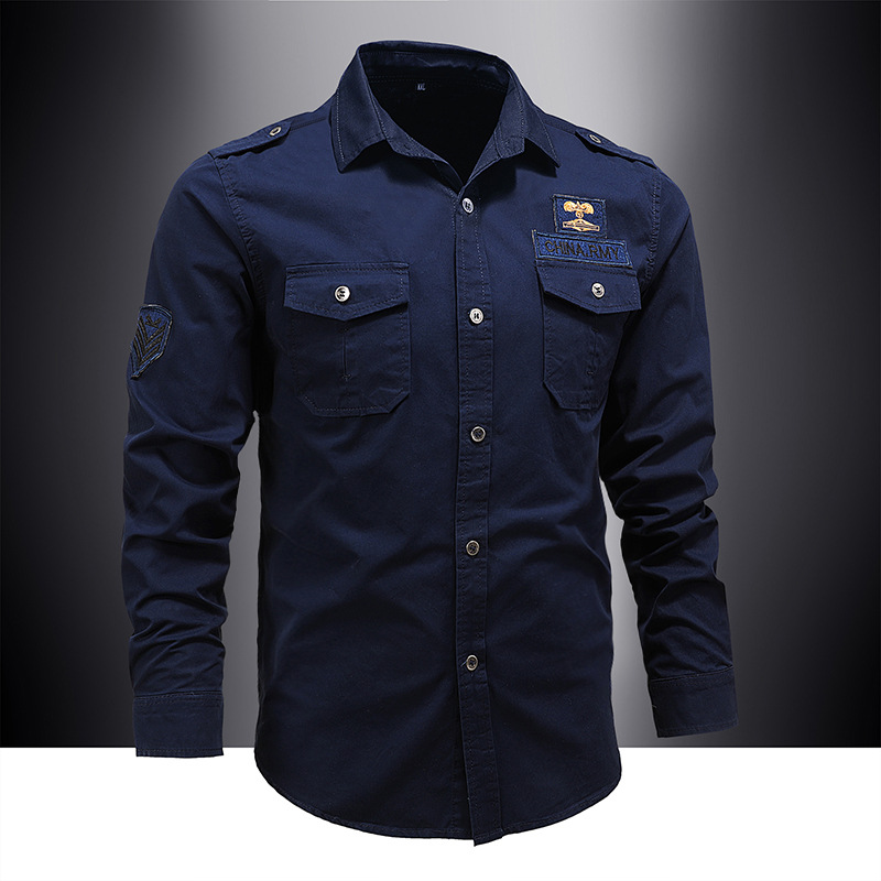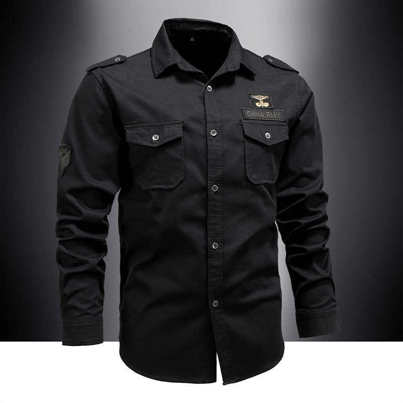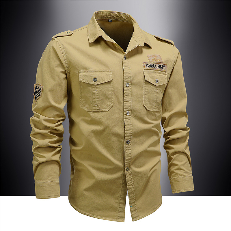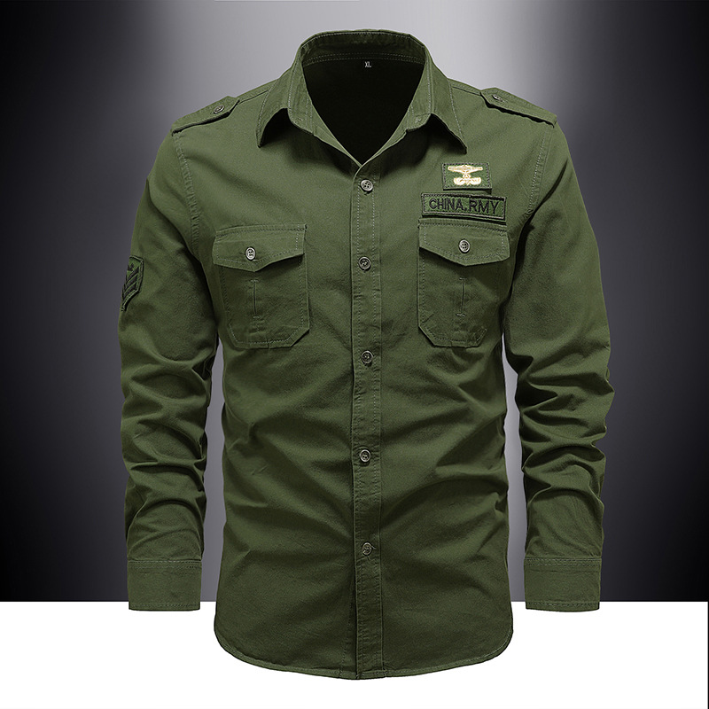 봄과 가을 셔츠 긴팔 셔츠 남자의 작업복 중년 느슨한 순면 캐주얼 봄 군사 녹색 플러스 사이즈 군사 코트 대외 무역스토어 가기