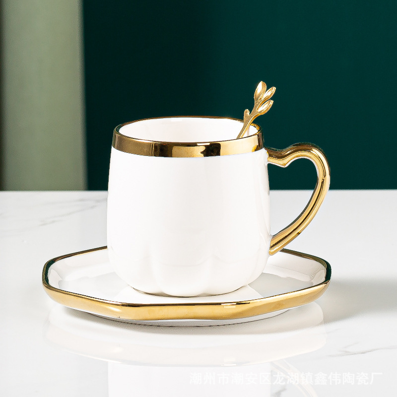 크리 에이 티브 골든 에지 세라믹 컵 접시 숟가락 사무실 커피 컵 홈 커플 워터 컵 중추절 선물 컵과 접시 세트
