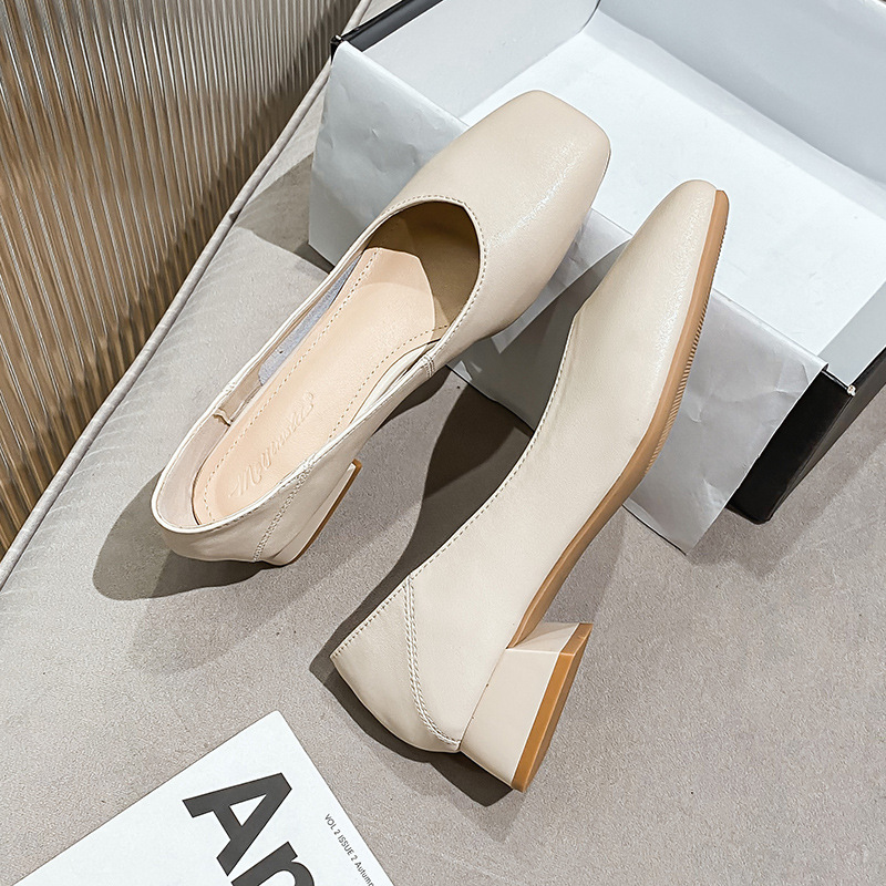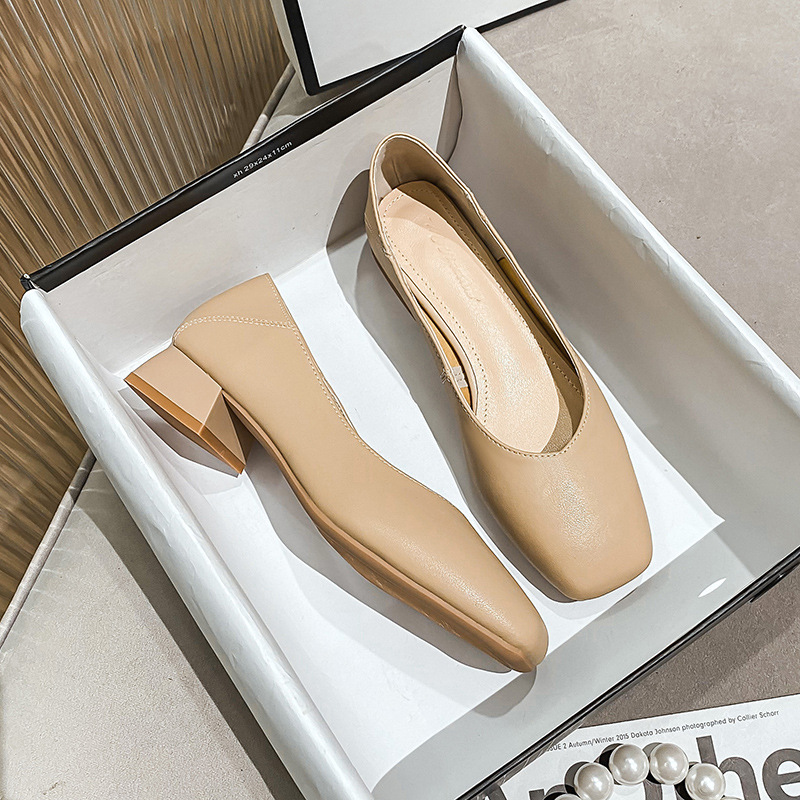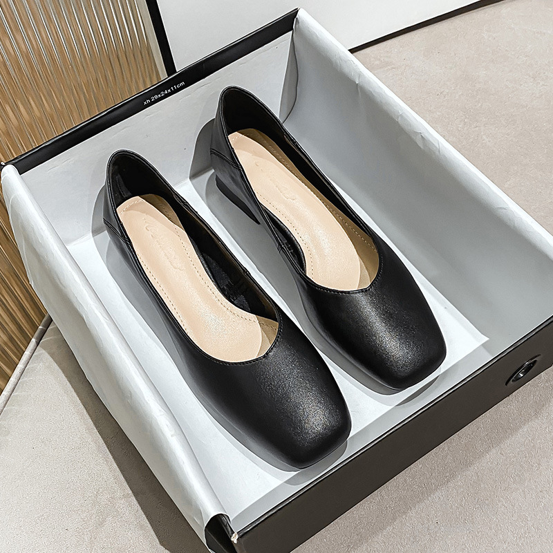 2025 봄, 가을 신상 두꺼운 굽 싱글 슈즈, 얕은 입 할머니 신발, 통근 작업화, 부드러운 가죽 대형 여성 신발 41-43스토어 가기