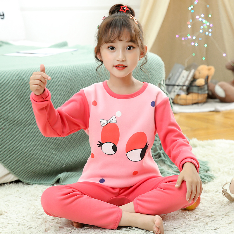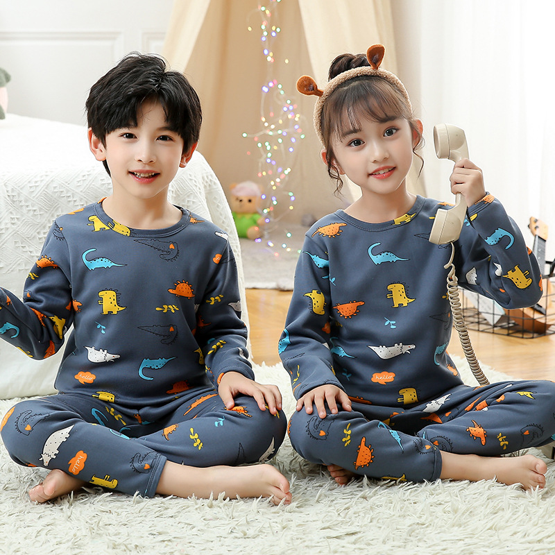 어린이 열 속옷 세트 가을과 겨울 새로운 대형 어린이 라운드 넥 기모 두꺼운 가을 바지 소년과 소녀 잠옷