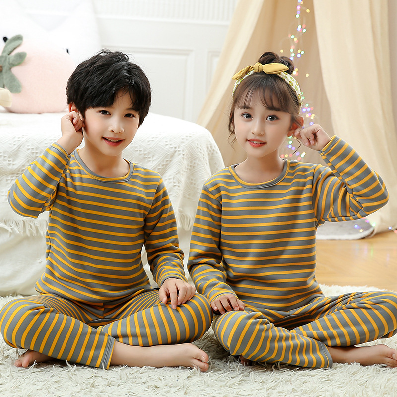 어린이 열 속옷 세트 가을과 겨울 새로운 대형 어린이 라운드 넥 기모 두꺼운 가을 바지 소년과 소녀 잠옷스토어 가기