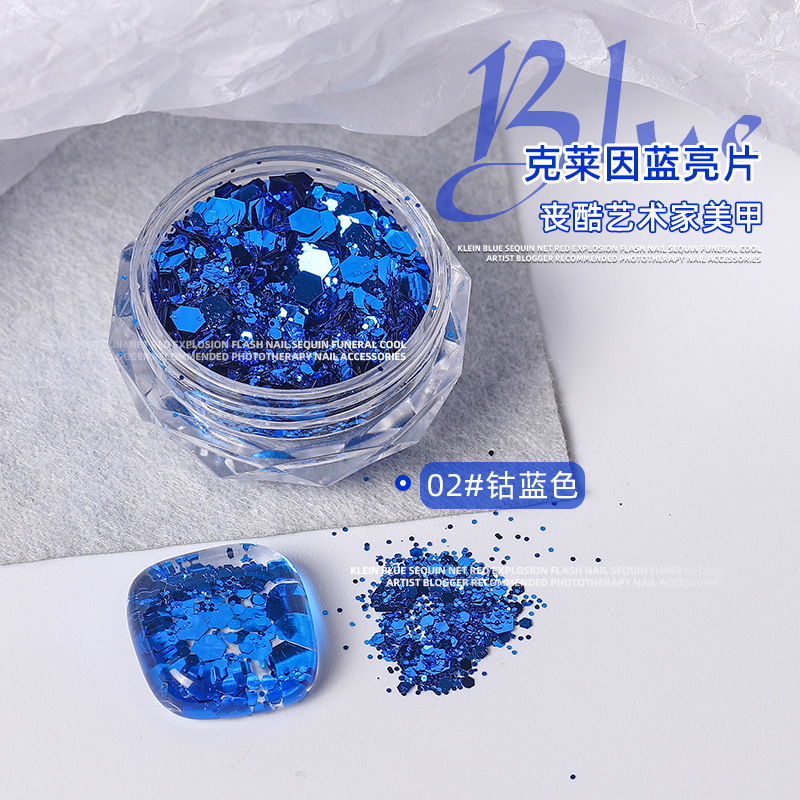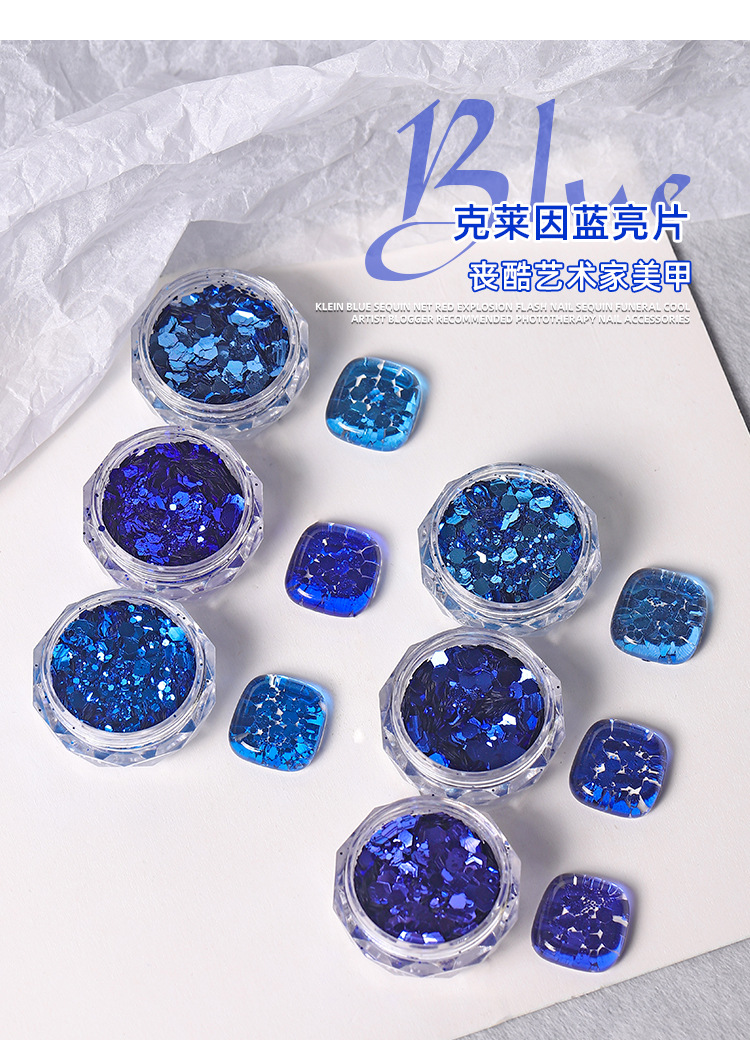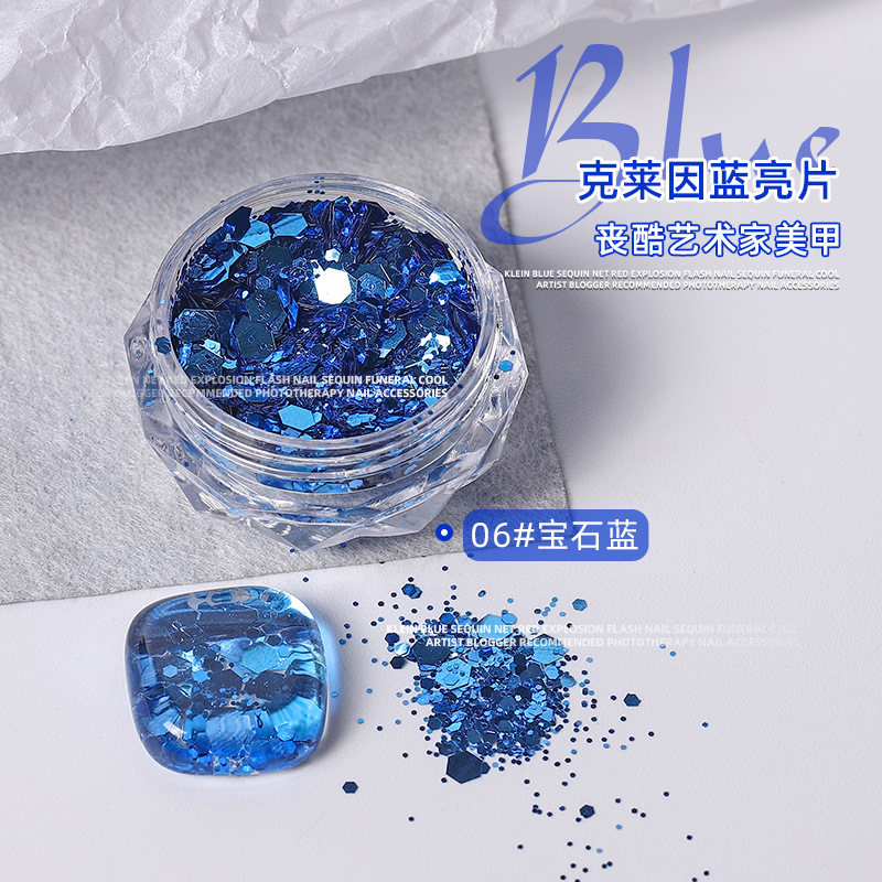 한국식 대형 스팽글 네일 아트 클라인 블루 네트 레드 플래시 육면 반짝이 보석 거울 그라디언트 6 색 세트스토어 가기