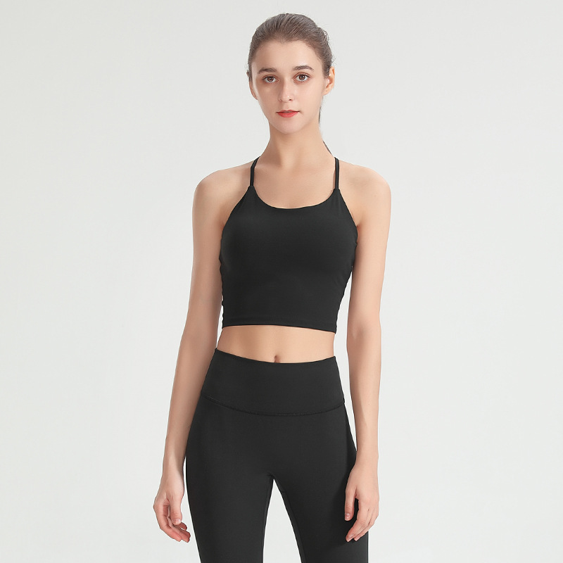 2023 봄과 여름 새로운 요가 조끼 크로스 뷰티 백 조끼 스크럽 알몸 충격 방지 모임 스포츠 피트니스 속옷스토어 가기