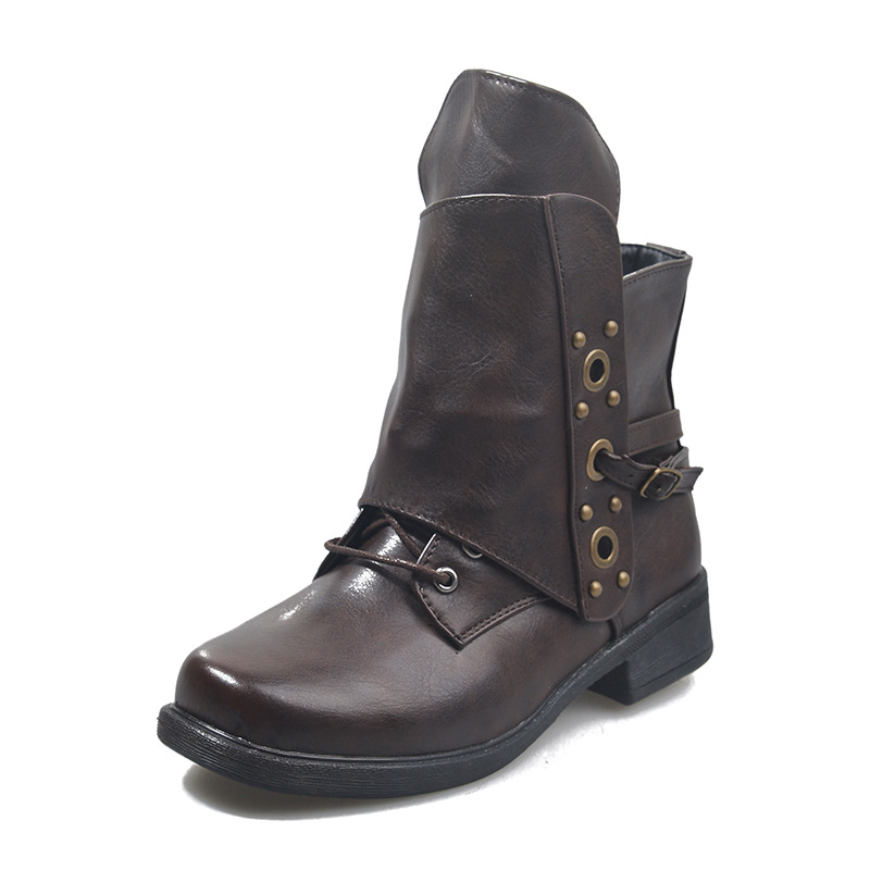대외 무역 재고 2021 가을과 겨울 아마존 플러스 사이즈 레트로 스퀘어 마틴 부츠 중간 배럴 크로스 스트랩 여성용 가죽 부츠