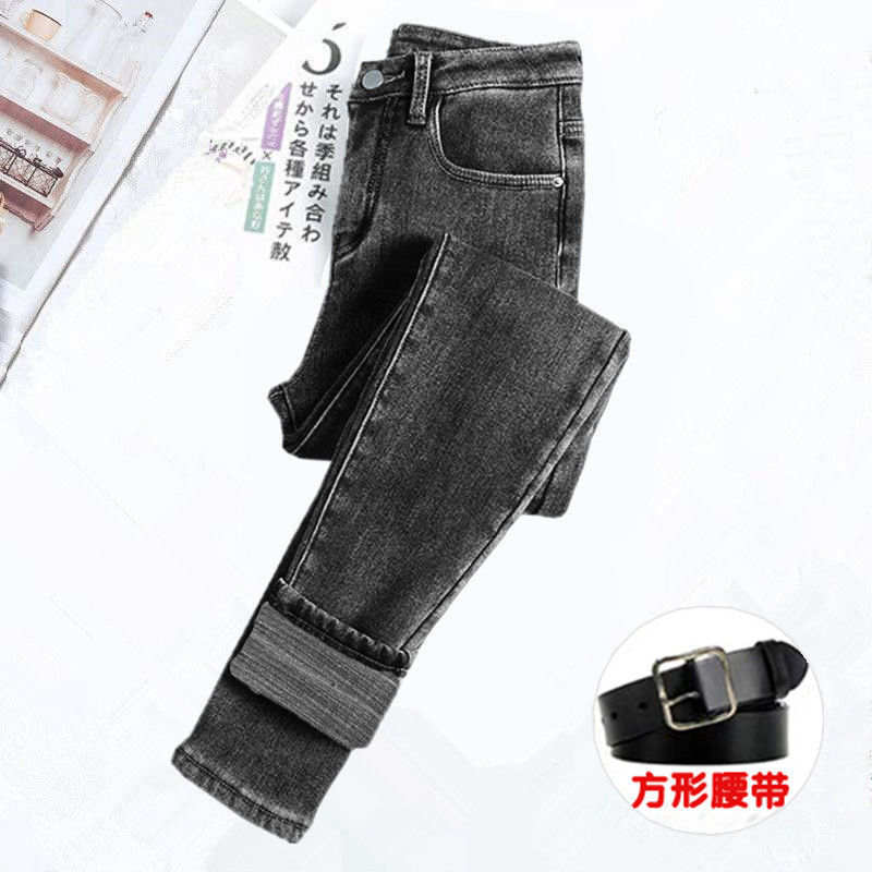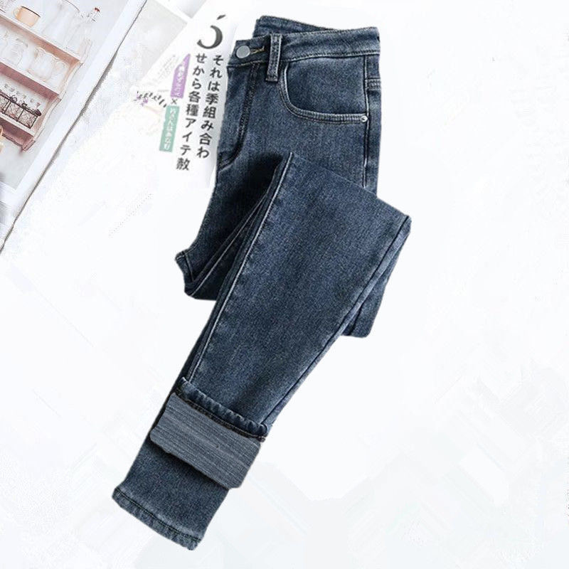 하이 웨이스트 진 기모 여자의 겨울 스키니 바지 외부 착용 두꺼운 바지 여자의 꽉 스트레치 연필 바지스토어 가기