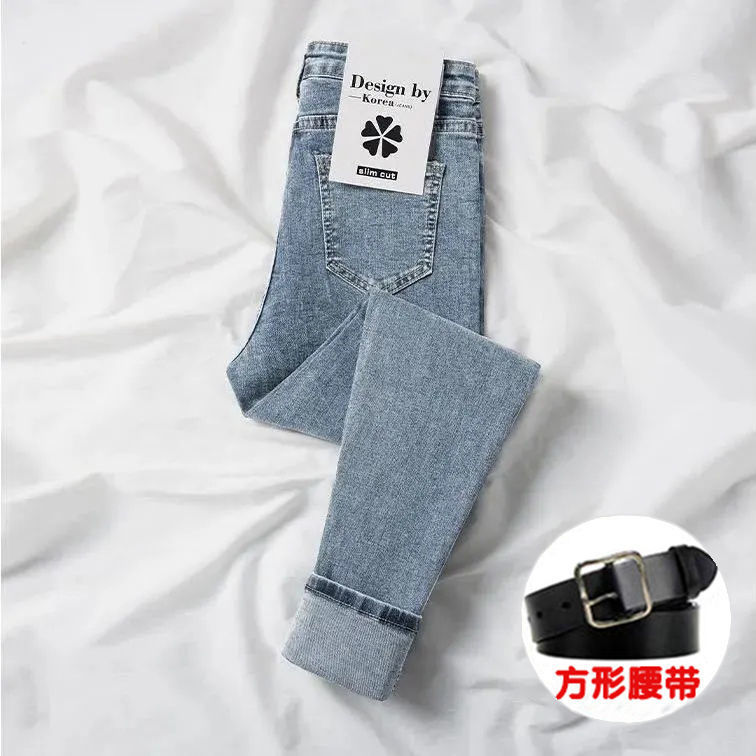 하이 웨이스트 진 기모 여자의 겨울 스키니 바지 외부 착용 두꺼운 바지 여자의 꽉 스트레치 연필 바지