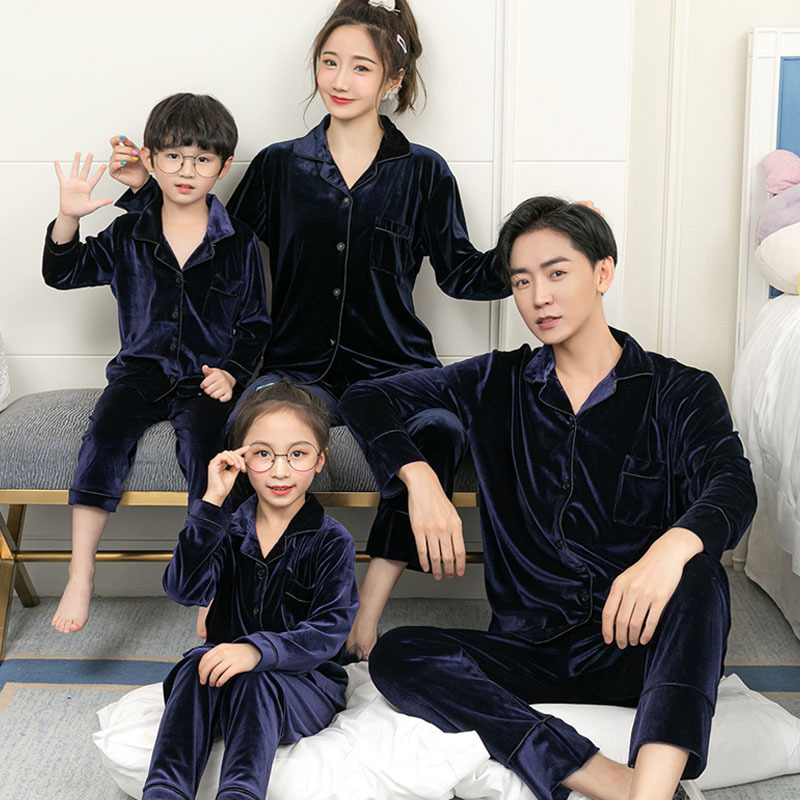 부모-자식 잠옷 가을과 겨울 황금 벨벳 플러스 사이즈 가족 네 가정 옷 한국 벨벳 긴 소매 잠옷 여자 겨울 세트