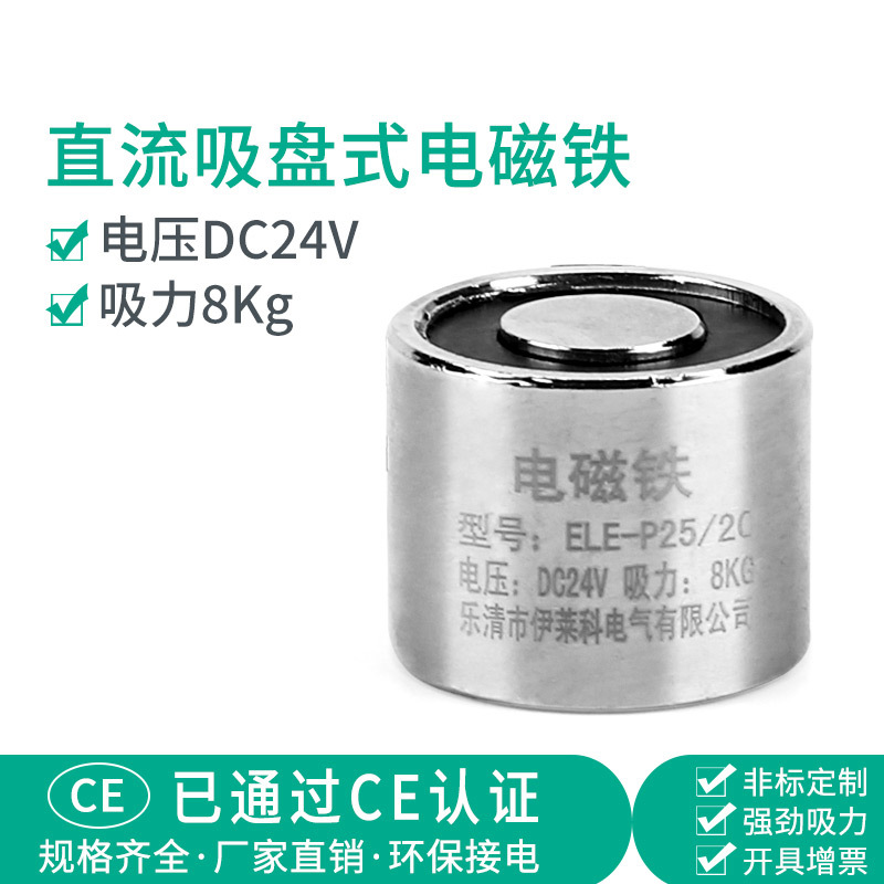 Elyco DC 전자석 흡입 컵 라운드 강한 전기 흡입 컵 흡입 8kg ELE-P25/20 DC24V스토어 가기