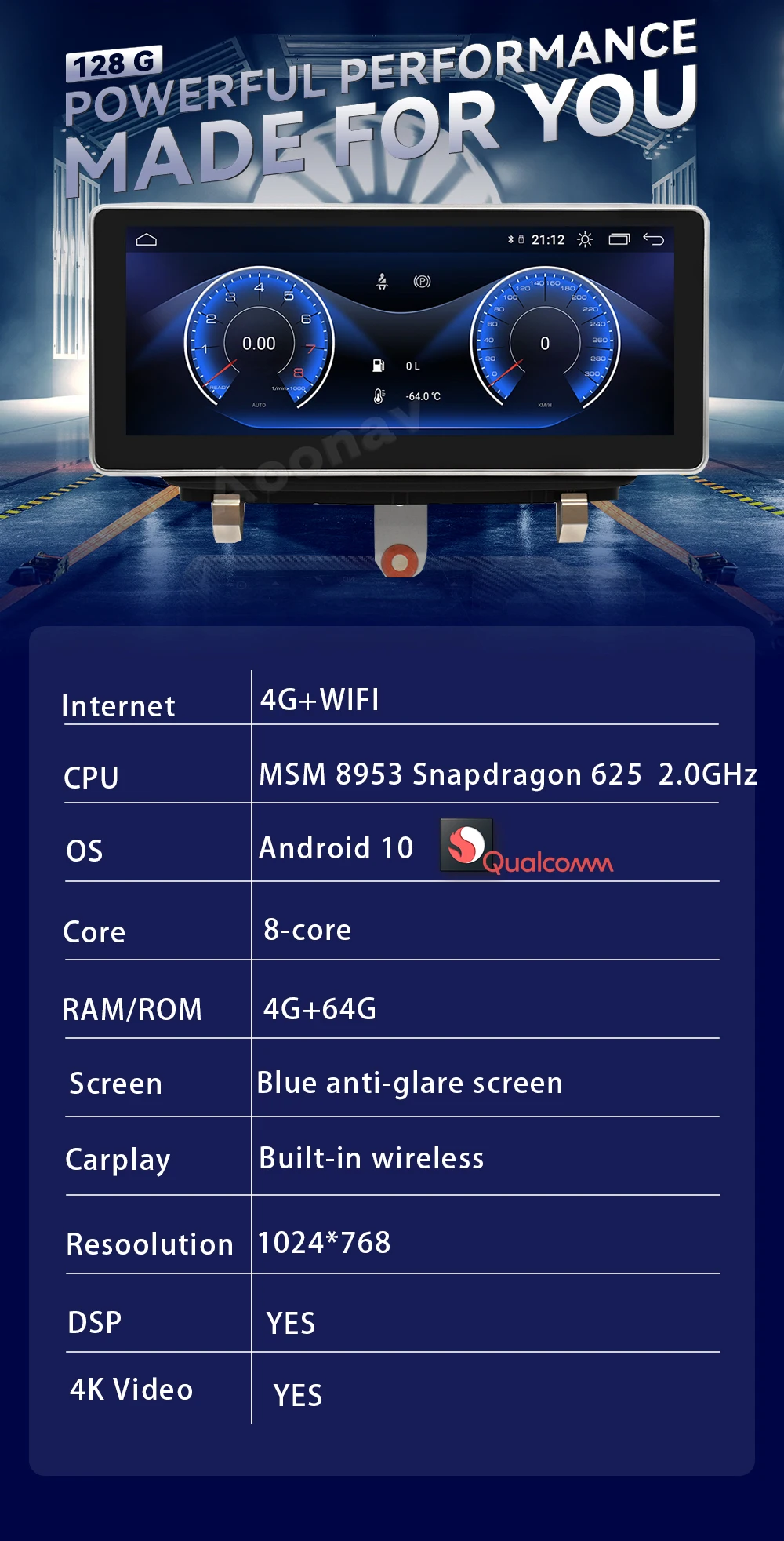 10.25 英寸 8 核 4+64G Android 10.0 Snapdragon 625 车载收音机 GPS 用于奥迪 Q3 2013-2018 多媒体 DVD 播放器主机