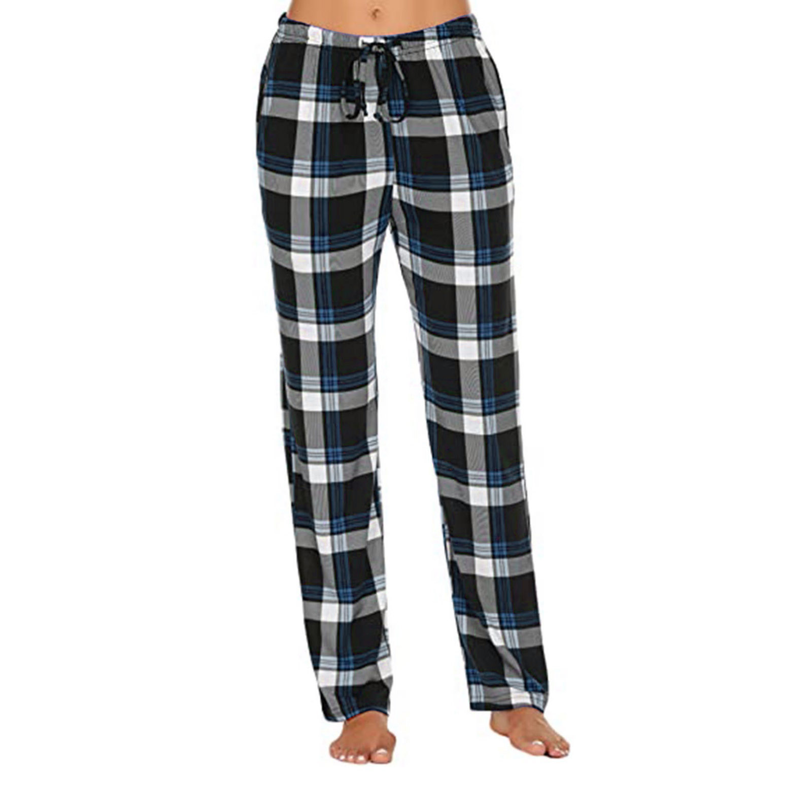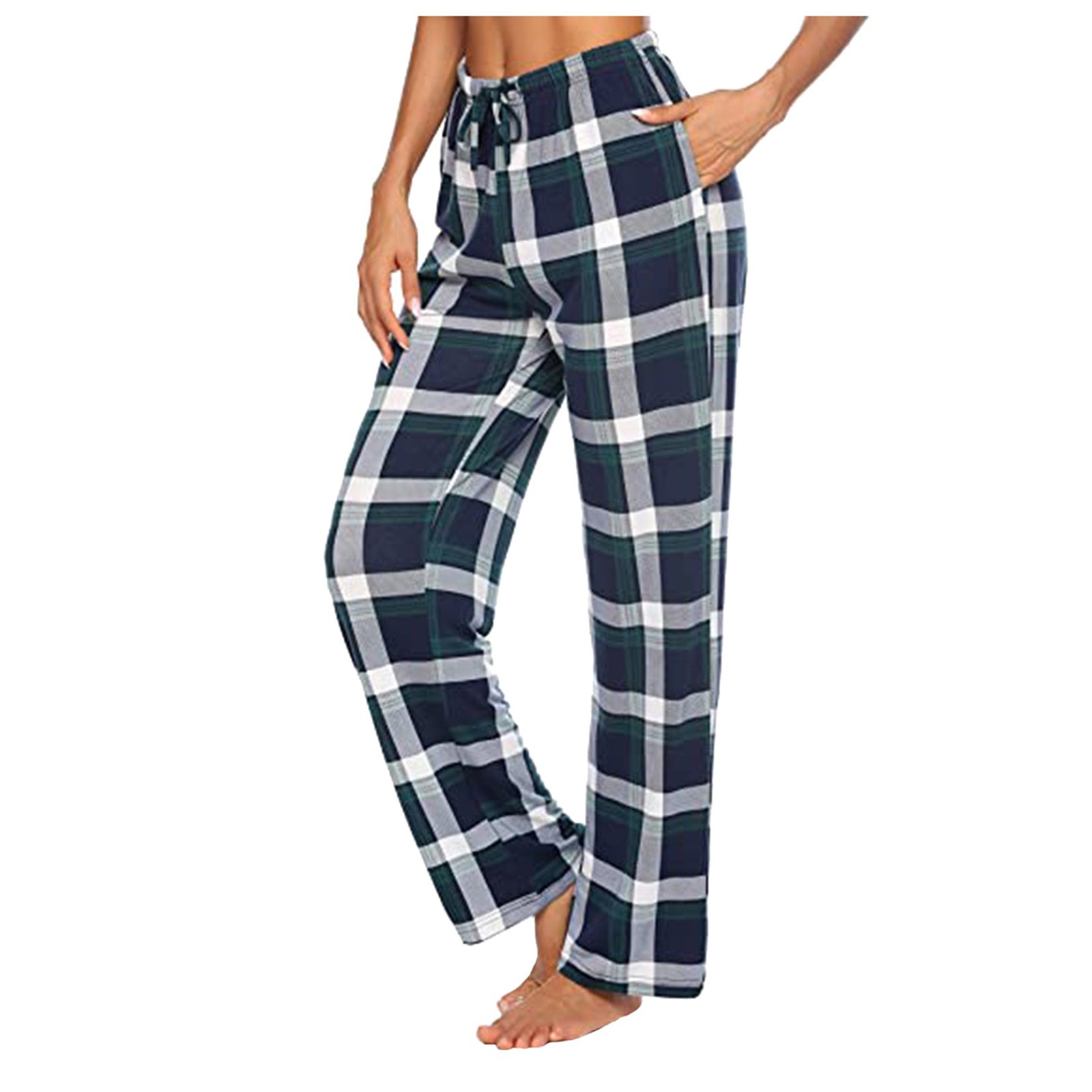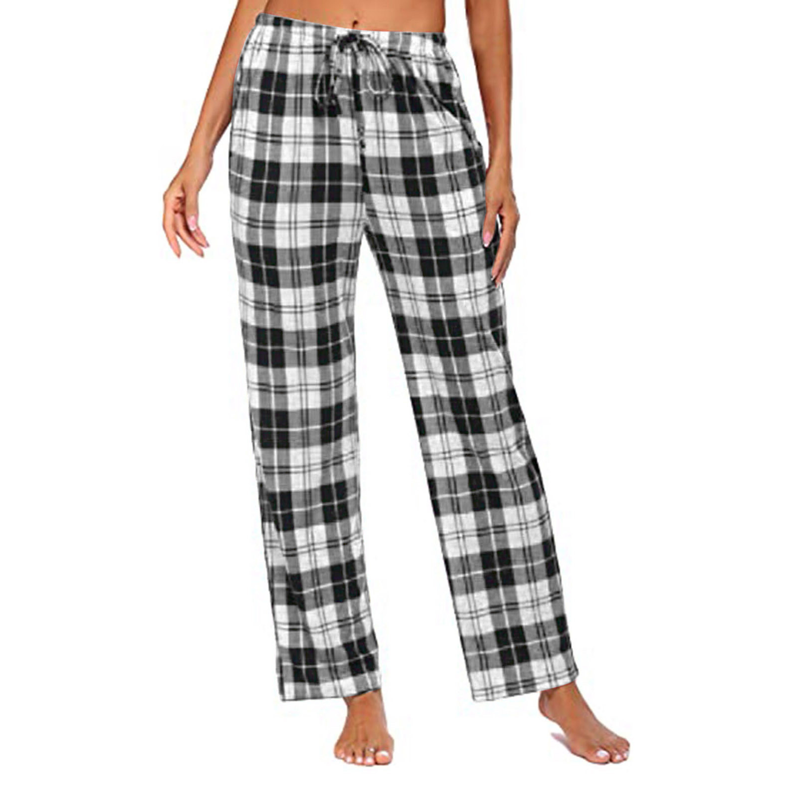 아마존 2024 여성용 캐주얼 바지 편안한 잠옷 바닥, 포켓 스트레치 격자 무늬 파자마 서랍 바지스토어 가기